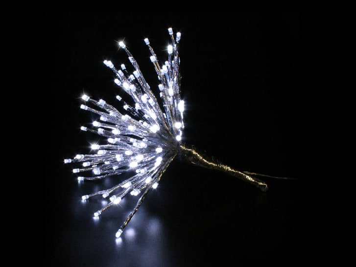 ROMANCE Bouquet SPRAY LED 3D ø50cm 144 LED Blanc pétillant blanc branche argent. Très basse tension, petillement flashant elegant et raffinen très forte densite lumineuse. Structure metallique souple à façonner pour leur donner le volume souhaité