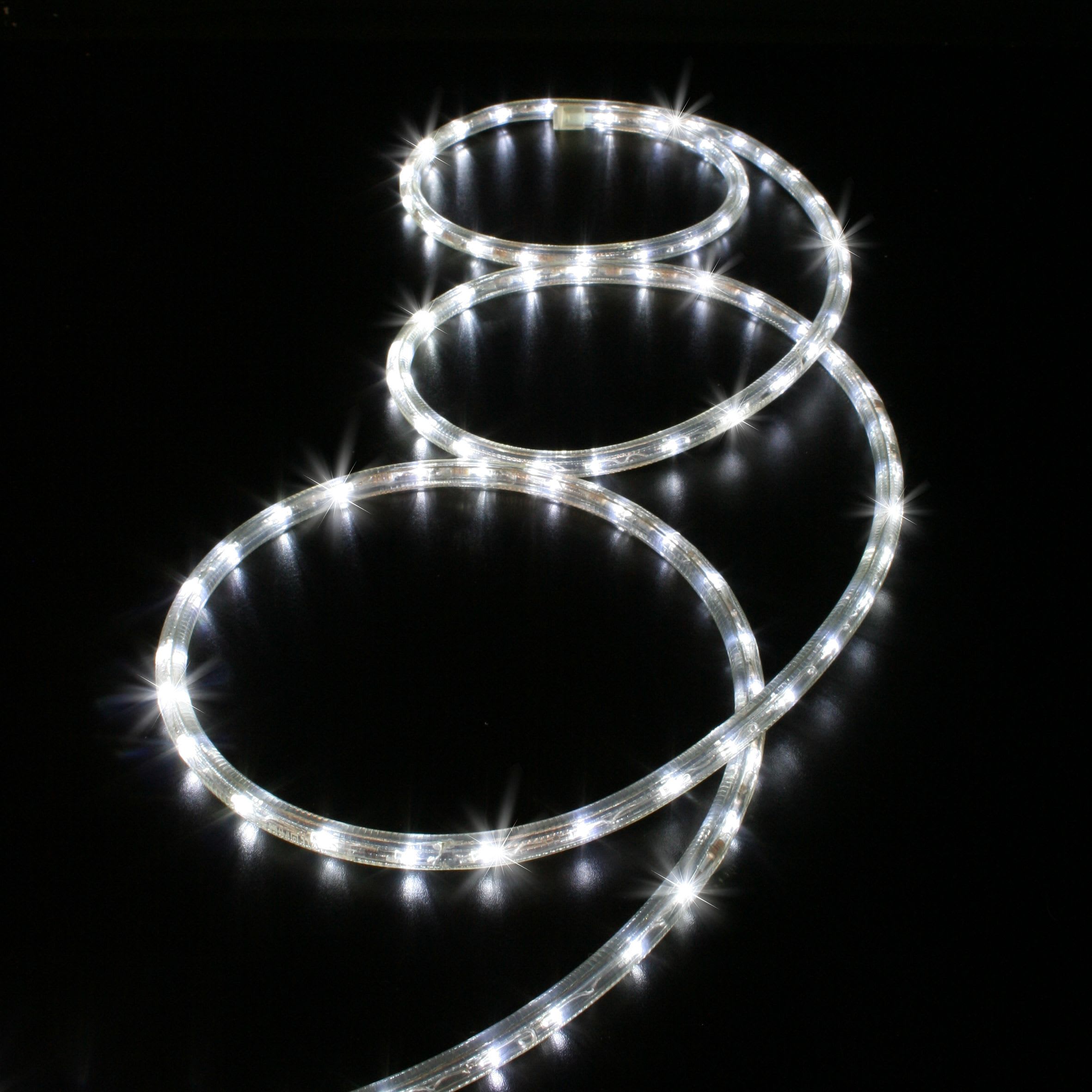 ROPE Cordon STRIP LED blanc touret de 44m, ø13mm 30LED/m coupe 1m. Fixe. Livré avec 3 alimentations munies de redresseurs. Position horizontale des LED pour une haute luminosité visible à 360°. LED éclatantes Idéal pour le surlignage de bâtiments et le câ