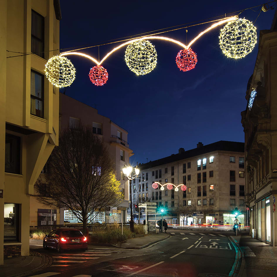 SATURN: Apportez une touche d'élégance à vos rues grâce à notre gamme de sphères lumineuses. Livrées avec un T de connexion, elles se raccordent à n'importe quel décor.