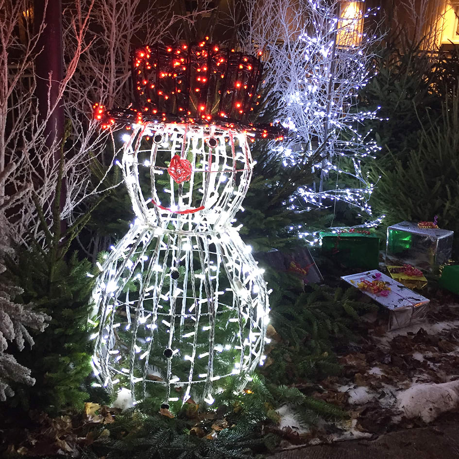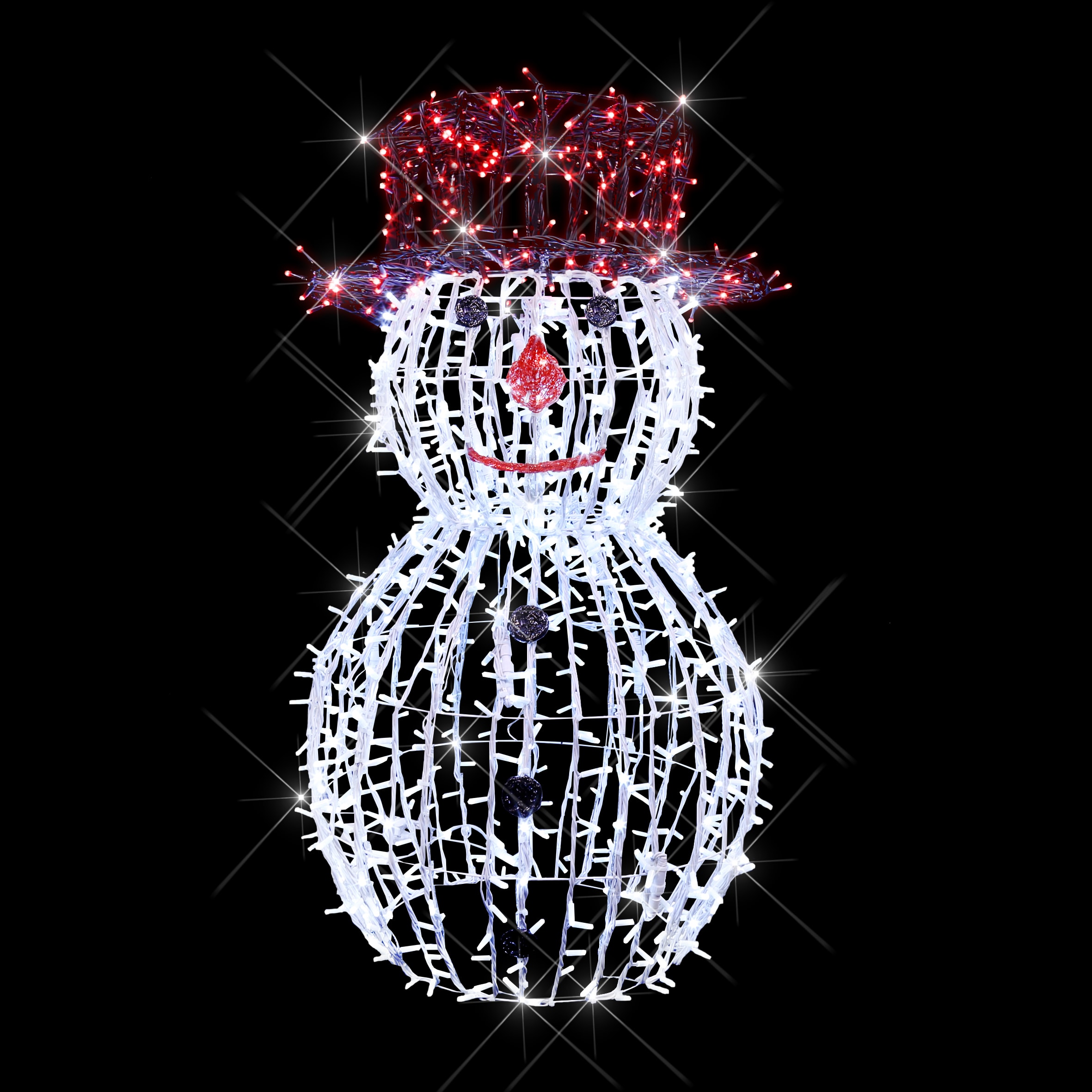 SNOWMAN Bonhomme de neige H1,40m Structure métal blanche 900 LED Blanc et Rouge cable blanc 31V. Beau volume pour un coût maîtrisé. LED ultralumineuse & éclat : LED de haute qualité, Ø8mm, construction à diffusion multidirectionnelle qui assure une parfaite répartition de la lumière. A lester ou fixer au sol (lest & fixation non fournis)