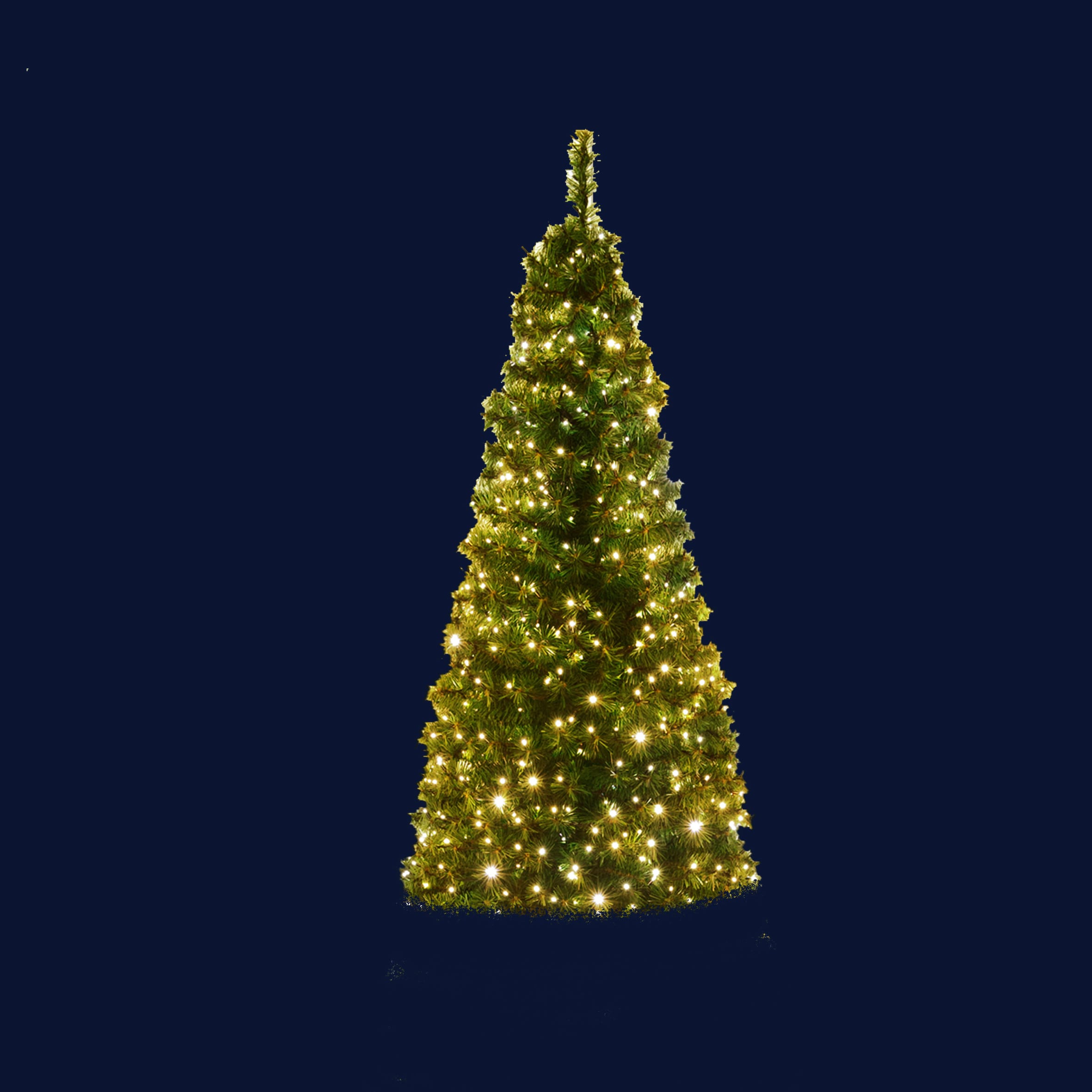 Laissez-vous tenter par notre produit phare le Sapin Spendid ! Il mesure 3.00m de hauteur, 1.20m de diamètre et pèse 90kg. Il est composé de 3 parties et est illuminé par des LED blanc chaud pétillant 230V. Il se monte très facilement et est certifié anti-feu M1.