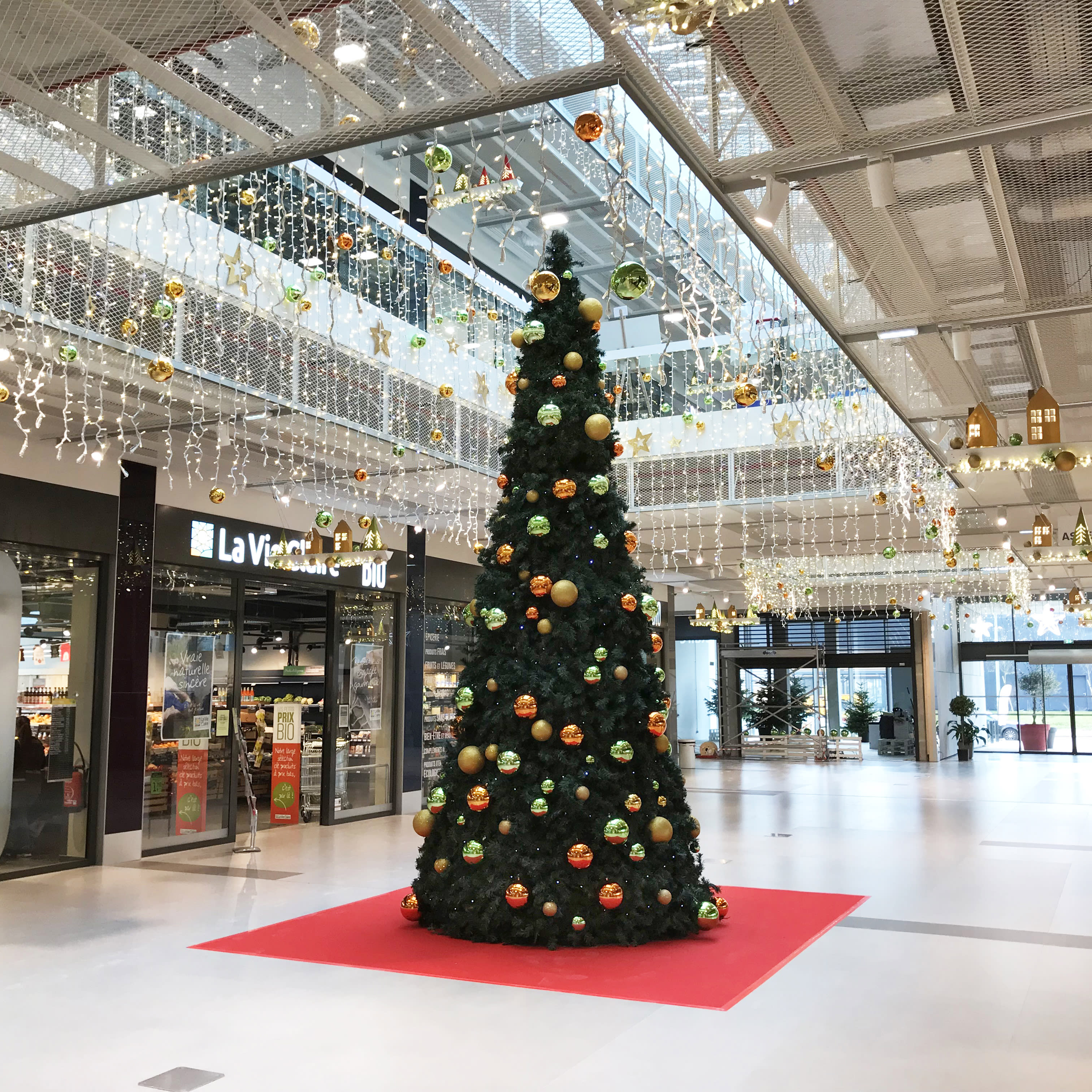 SPLENDID Sapin artificiel conique Vert H5,10m 2584 brins 2800 LED Blanc chaud pétillant 230V. PVC traité anti-feu M1.Sapin dense et fourni. Montage facile : composé de 3 parties (haut H1,60m / milieu H2.10m / bas H1,40m). Poids total 200kg / volume avant montage : 6 palettes 80x120cm