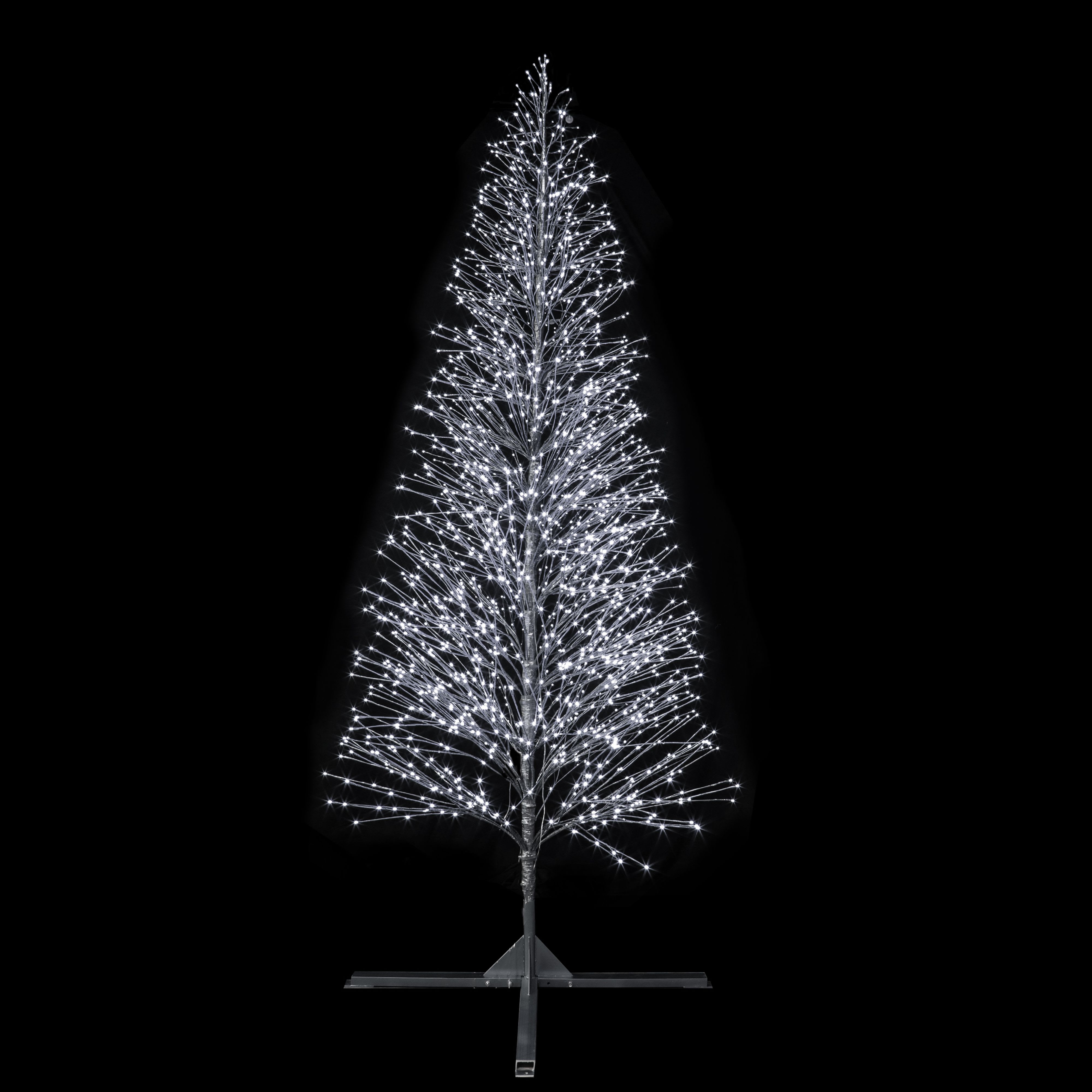 SPRAY XL - Sapin spray XL - H4m x Ø1,45m - Structure argent - 2290 LED Blanc pétillant blanc - 230V | Très forte densité lumineuse | Pétillement élégant et raffiné | Structure métallique inoxydable| Piètement facile à lester