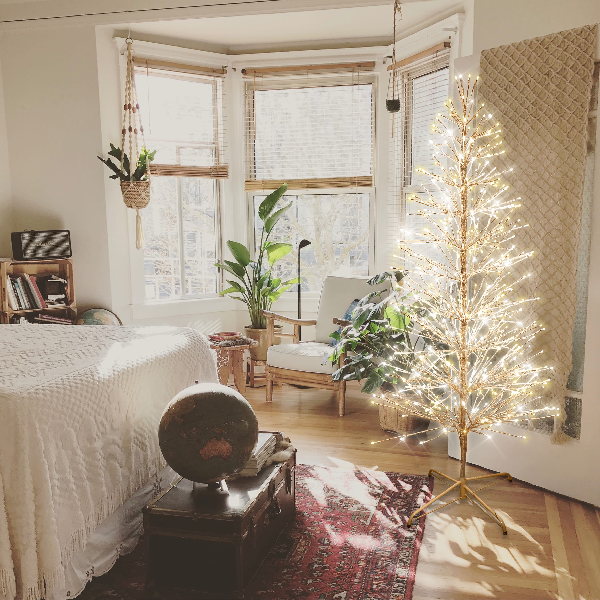 SPRAY Sapin spray H2.10m x Ø1m 600 LED Blanc chaud pétillant blanc Branche cuivre mat Très basse tension. Très forte densité lumineuse. Structure métallique souple façonnable. Pétillement élégant et raffiné