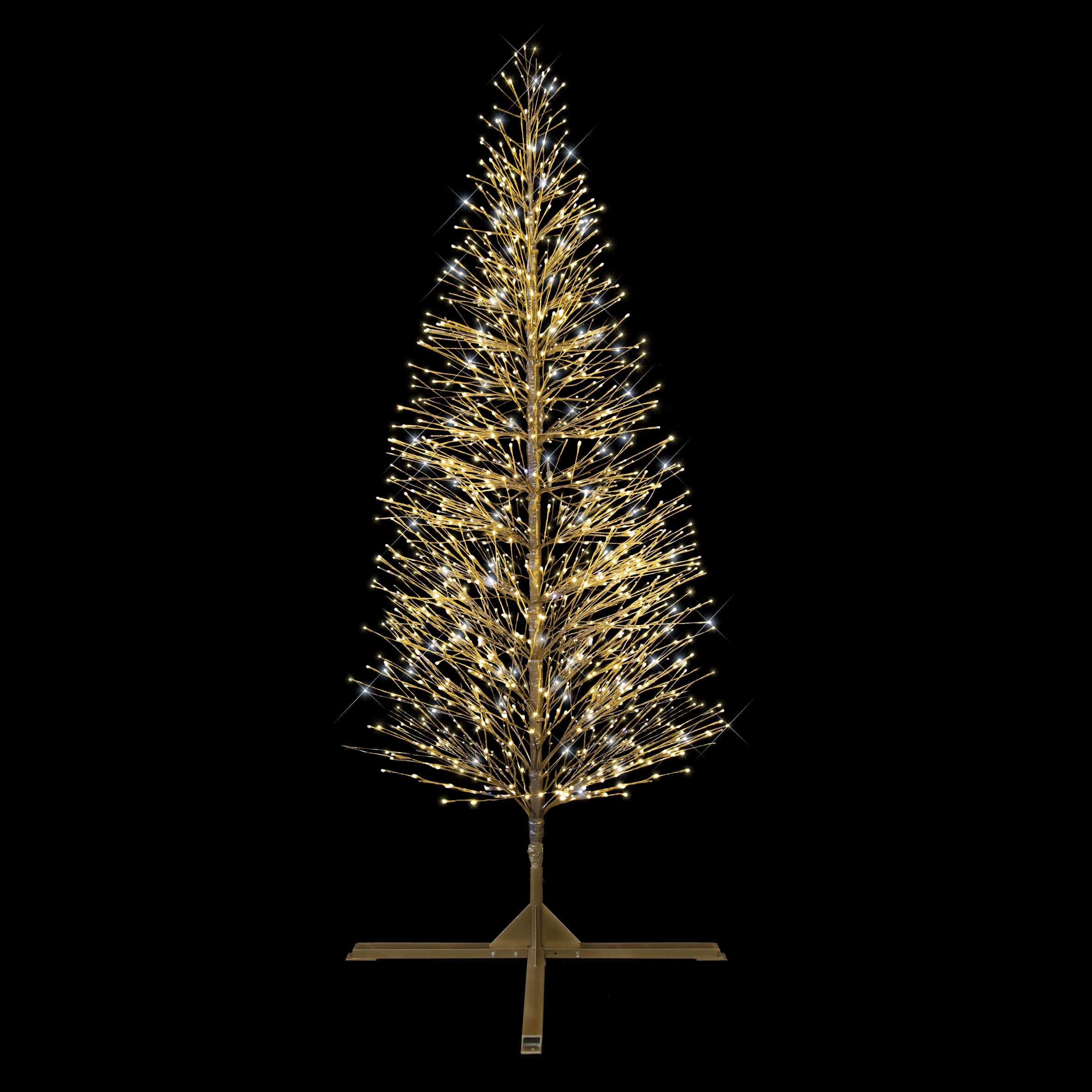 SPRAY XL - Sapin spray XL - H3m x Ø1,25m - Structure cuivre - 1520 LED Blanc chaud pétillant blanc - 230V | Très forte densité lumineuse | Pétillement élégant et raffiné | Structure métallique inoxydable| Piètement facile à lester