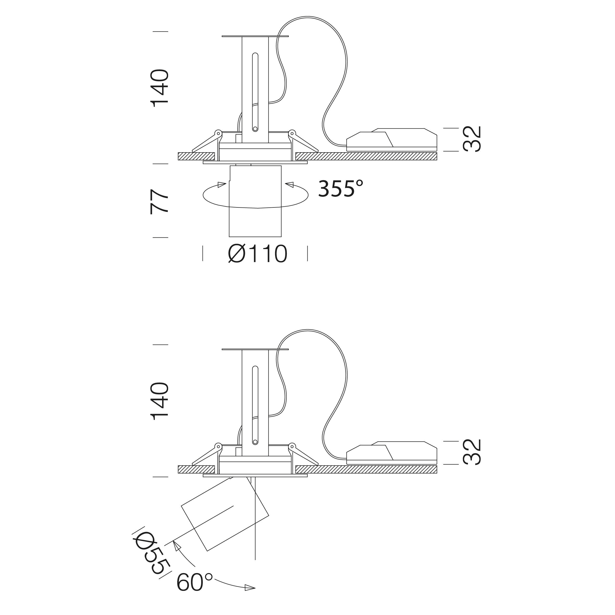 ASSO C SMALL est un encastré. Il dispose d'un câblage CLD (alimentation électronique +LED)