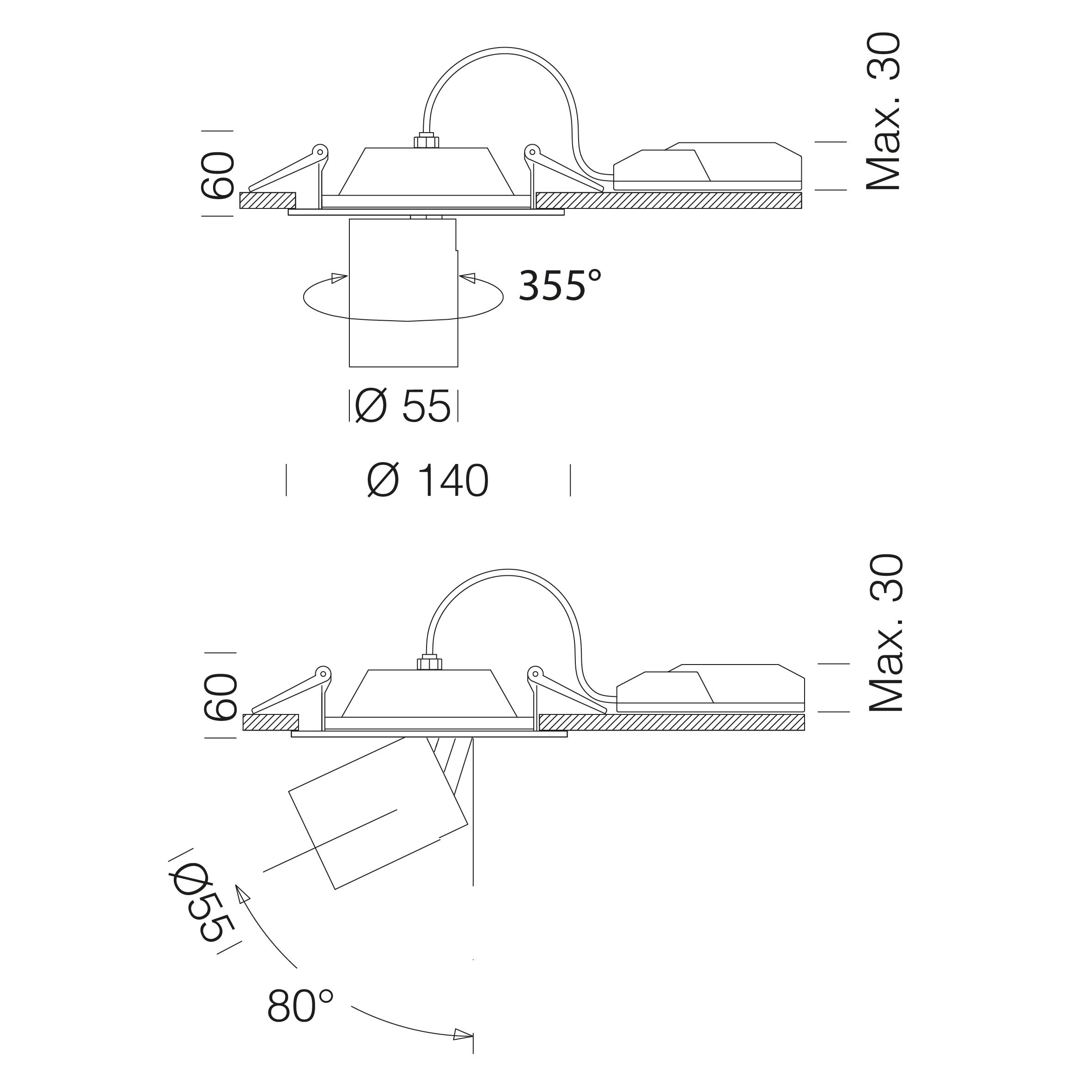 Intérieur Asso D Small CLD-DD 13W COB 1571 lumens 4000k 26° CRI>80 BLANC 0,64kg IP20 IK07 Lowflicker Facteur de puissance >0,9 Maintien flux lumineux 80% 50.000 heures (L80B20) groupe de risque 0