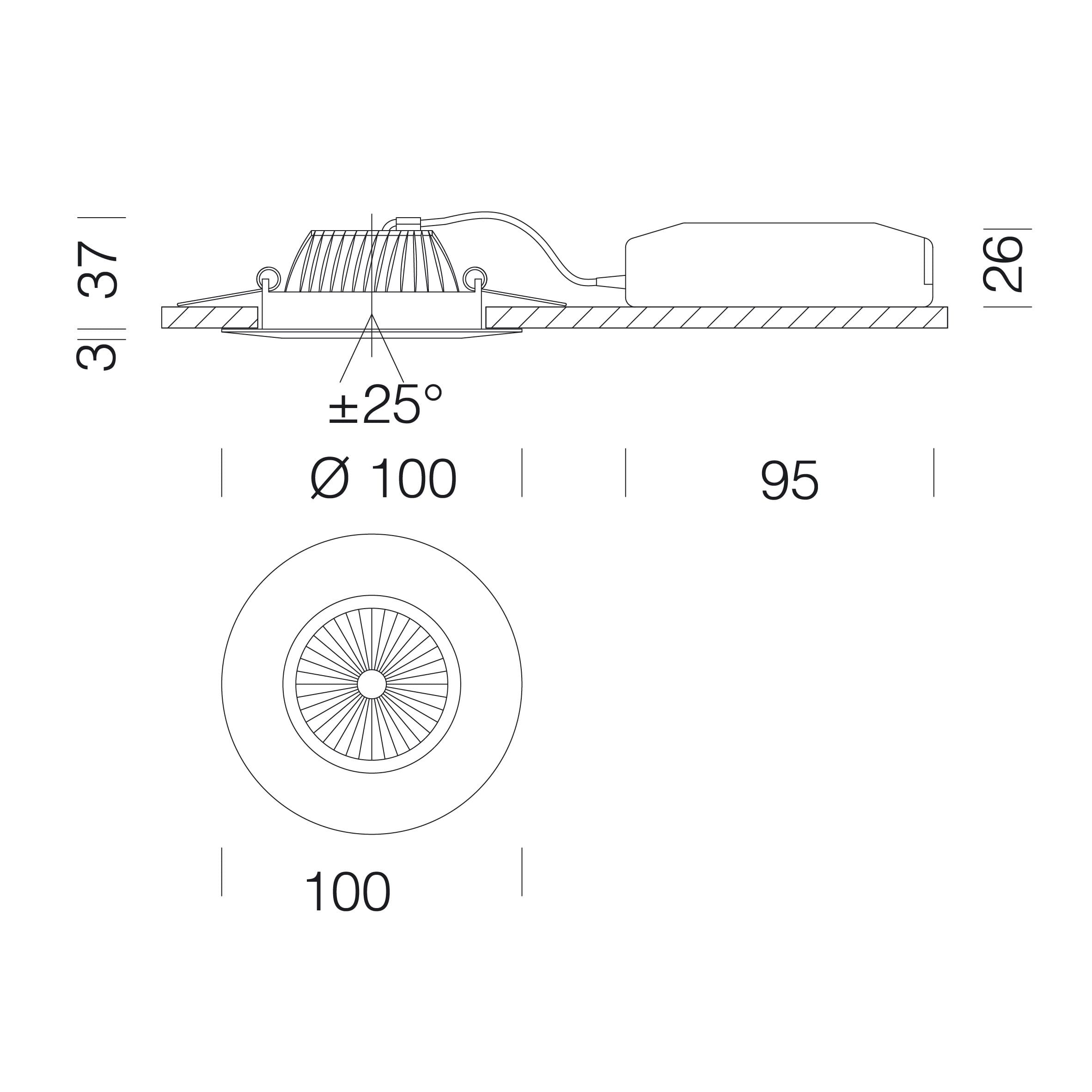 Corps : aluminium moulé sous pression avec logement pour ressorts de fixation au faux-plafond.