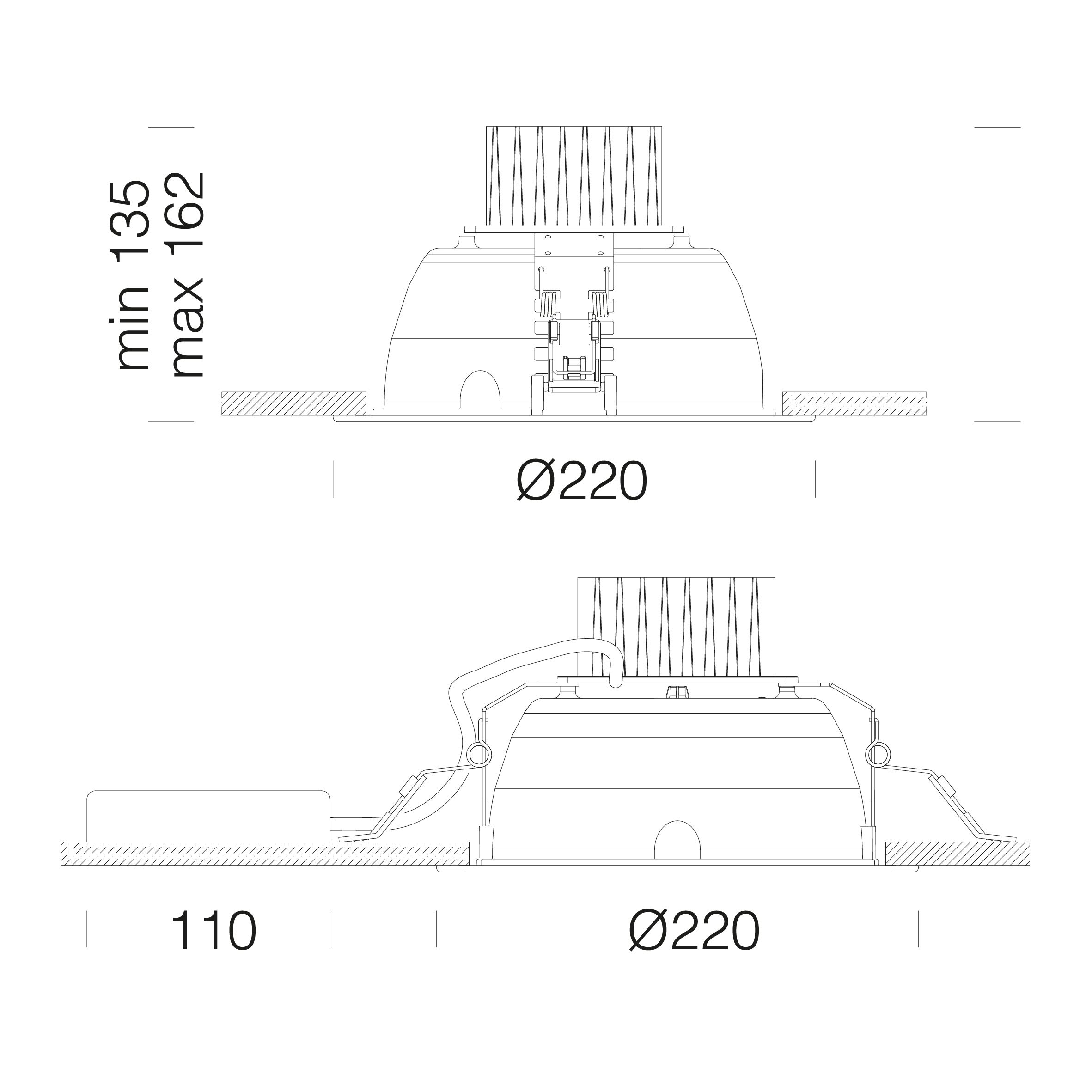 Encastré Office 1 Dark Tunable white Diamètre 220 Led Cob 2700K 6500K CRI>90 couleur aluminium lowflicker colourSWITCH avec 9 valeurs chromatiques prédéfinies