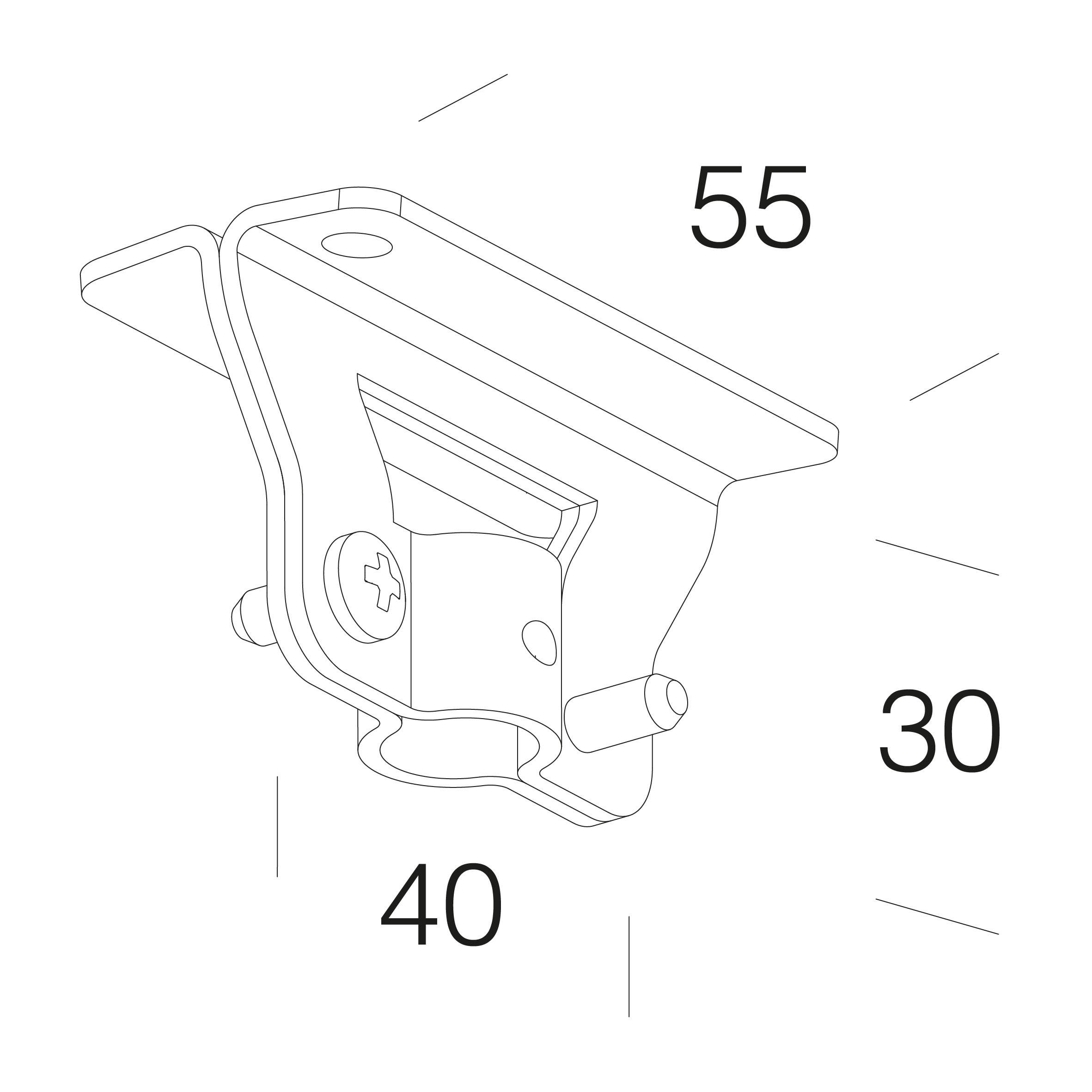 Permet l'installation en suspension à l'aide de tiges Ø10 ou de câble en acier. Possibilité de coulissement le long de l'axe du rail. Charge max: 20 kg avec câble en acier et 30 kg avec tiges.