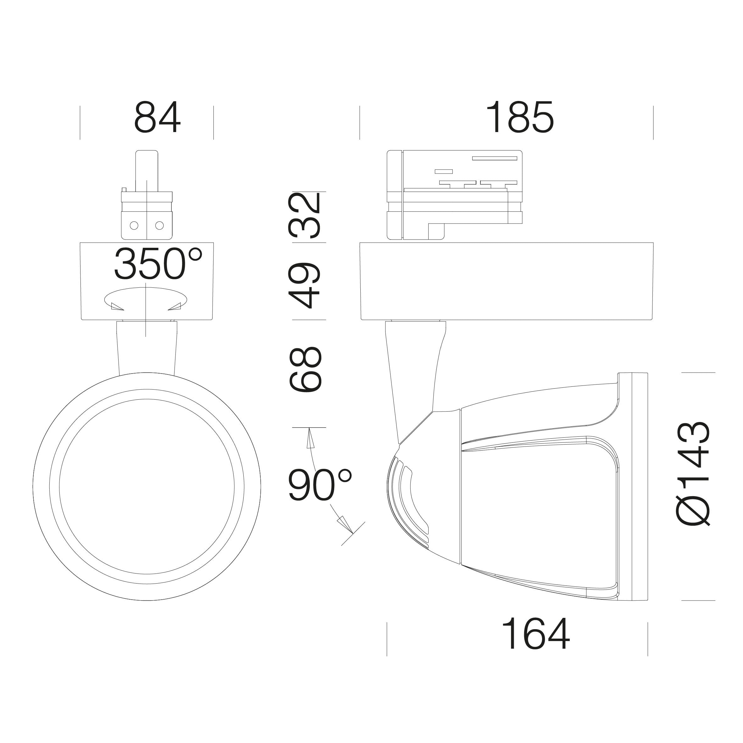 Rio est un projecteur sur rail avec adaptateur universel en LED COB de 54 watts avec une ouverture de faisceau de 45°
