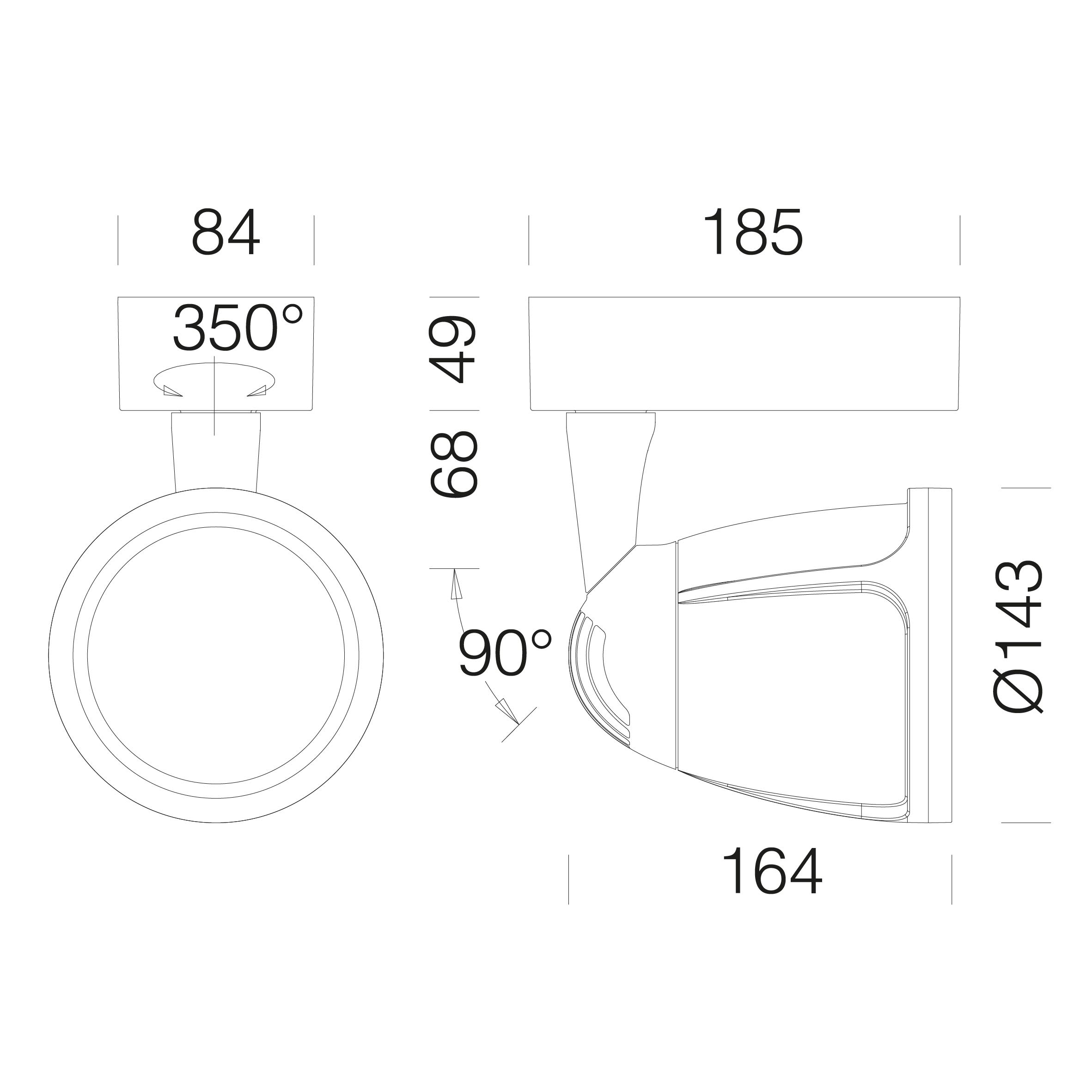 Rio est un projecteur sur patère en LED COB de 54 watts avec une ouverture de faisceau de 45°