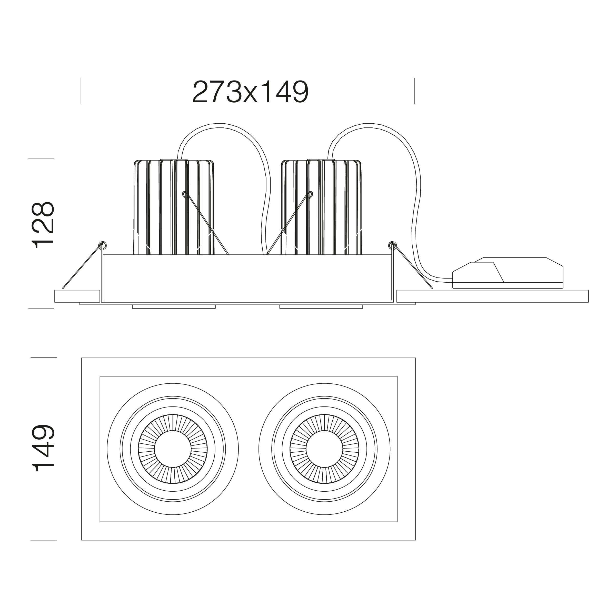 Trimless fait partie de la série DISANO en orientables avec un CRI>90 avec encastrement en faux-plafonds de plâtre.