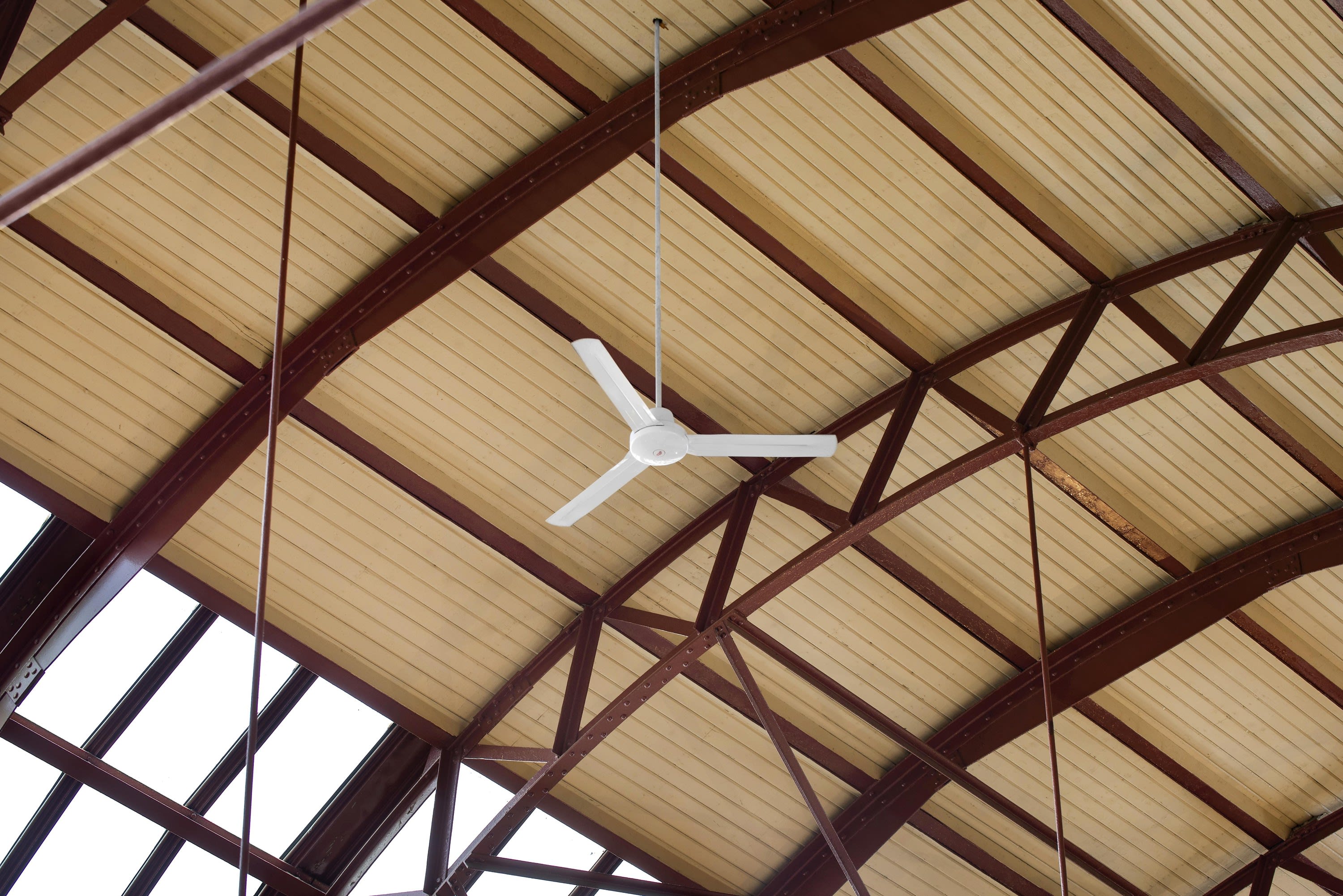 Les déstratificateurs ICF sont surtout destinés à réguler la température des locaux à haut plafond, notamment les locaux industriels et de stockage, les gymnases et les magasins. Des tiges et des pales de différentes tailles ainsi que plusieurs régulateurs sont disponibles, ce qui permet d’adapter le déstratificateur ICF à presque toutes les applications.Le déstratificateur ICF rabat l’air chaud du plafond et adoucit ainsi la température à cet endroit. Les déperditions de chaleur à travers le toit et les murs sont réduites et souvent, les coûts de chauffage peuvent être diminués jusqu’à 30 %. Un déstratificateur ne consomme pas plus qu’une ampoule de 75W. Facile à installer, le retour sur investissement est très court.L’ICF peut tourner dans les deux sens. Le moteur est équipé de roulements à billes graissés à vie et d’un thermocontact. Les pales sont de diamètre 1422 mm et lalongueur de tige est de 545 mm en standard.Le déstratificateur doit s’utiliser avec un régulateur de vitesse.Couleur: blanc, RAL 9010, NCS 0502-R90B.Marquage CE
