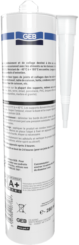 Mastic de jointoiement et de collage agréé pour être en contact permanent ou occasionnel avec les aliments ou les boissons et résistant de -40°C à +180°C en continu.