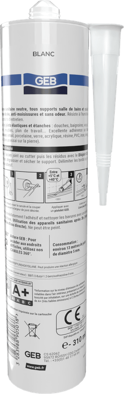 Mastic silicone neutre (alcool / alcoxy) avec effet fongistatique (protection contre les moisissures) Qualité spéciale sanitaire ? Utilisable sur la plupart des supports.