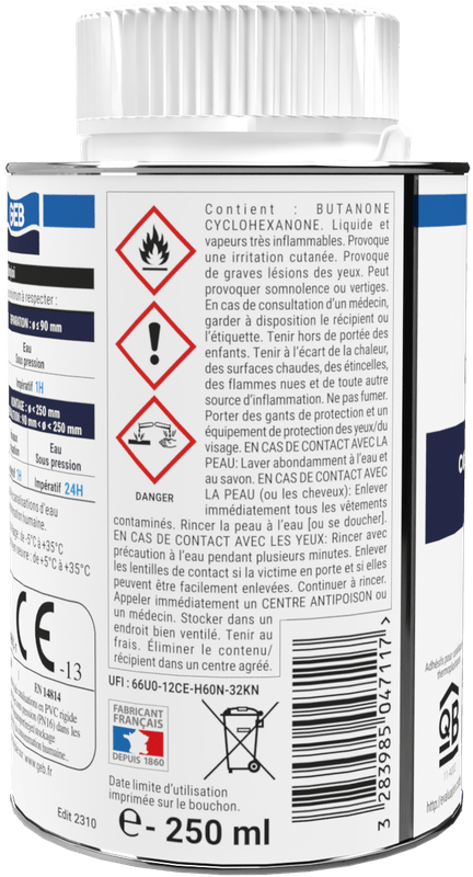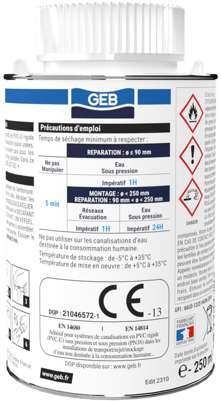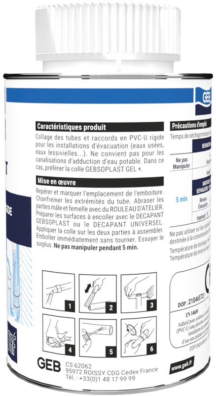 Colle évacuation en gel pour raccords en PVC rigide