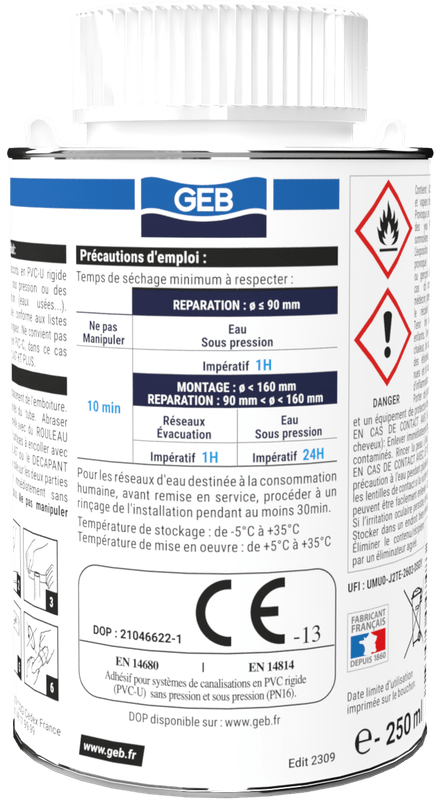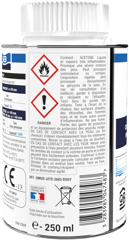 Colle en gel pour assemblage d'éléments de canalisation en P.V.C. non plastifié (uPVC)