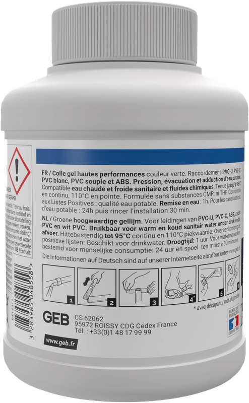 Colle pour assemblage d?éléments de canalisation en PVC-C, PVC-U, ABS, PVC souple et PVC blanc.