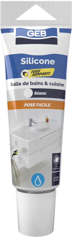 Mastic sanitaire toutes surfaces cuisine et salle de bains. Le Silicone tous supports est un silicone neutre traité antimoisissures. Il adhère parfaitement sur les matériaux synthétiques (acryliques ou composites). Tube 100 ml blanc