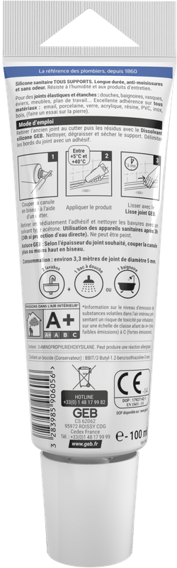 GEB - GEBTUB JOINT SILICONE TOUS SUPPORTS pour surfaces synthétiques et émaillées tube - 590605