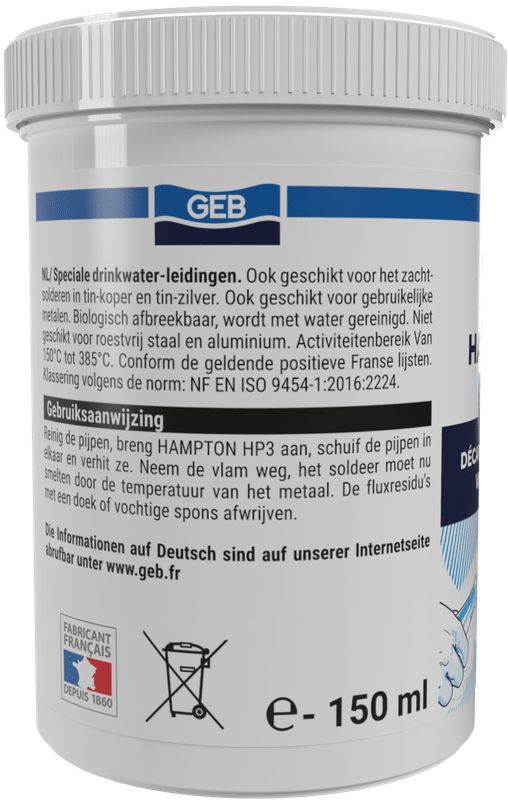 Hampton HP3 Pâte. Pâte décapante pour soudure à l?étain. Permet une accroche rapide de la soudure. Se nettoie à l?aide d?un chiffon humide. CLP - Conformité aux listes positives. Pot 150 ml