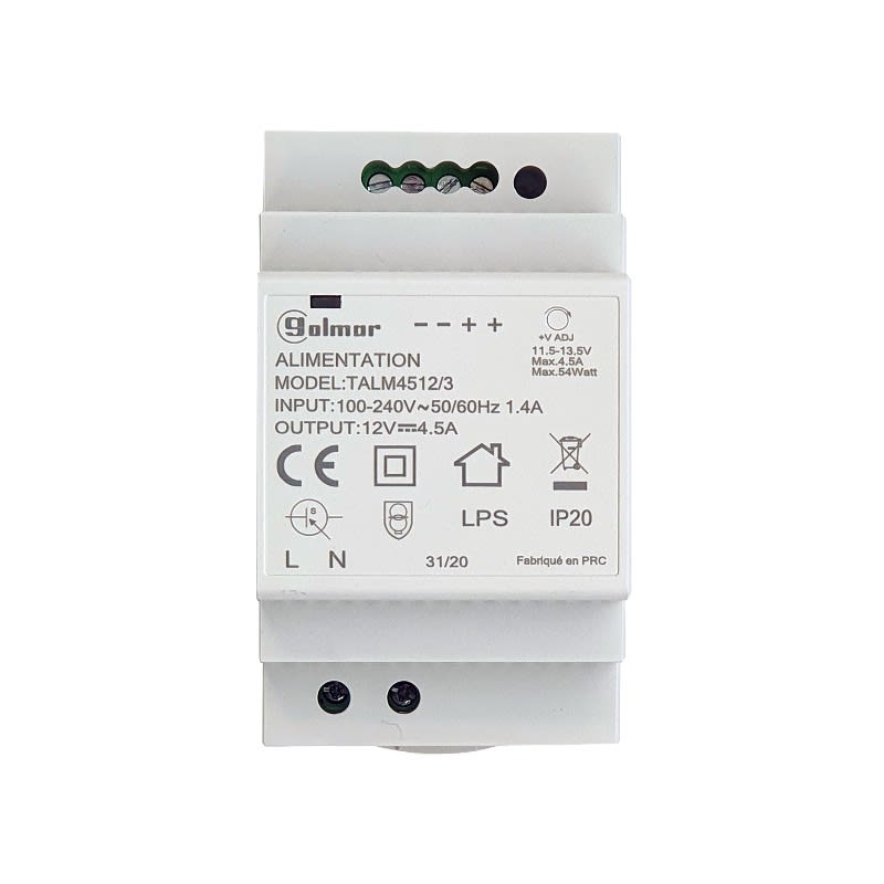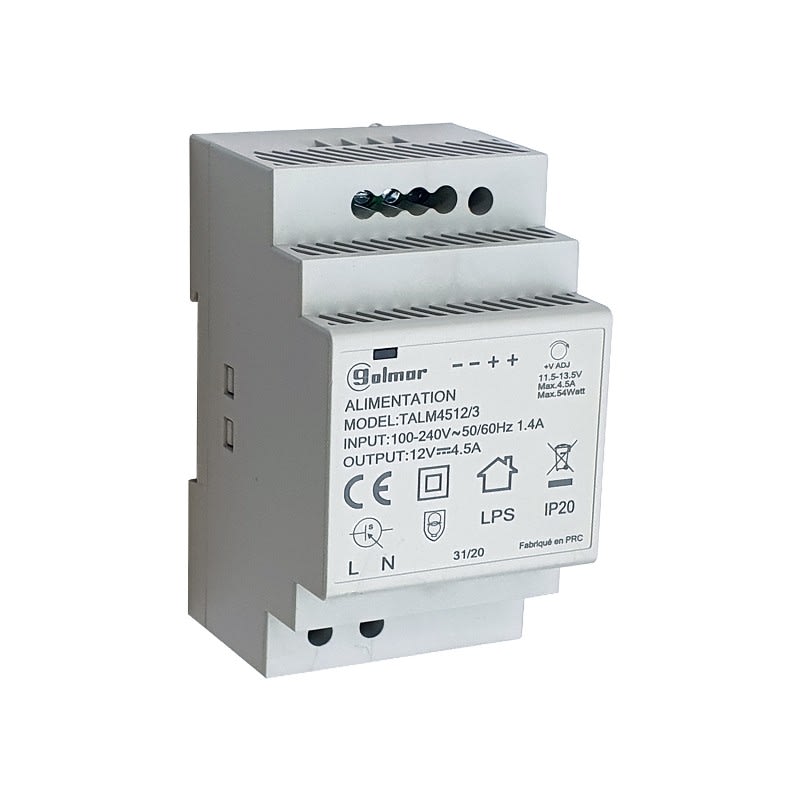 Golmar - Alimentation modulaire 12 Vcc - 4.5 A, 3 modules DIN - TALM4512/3
