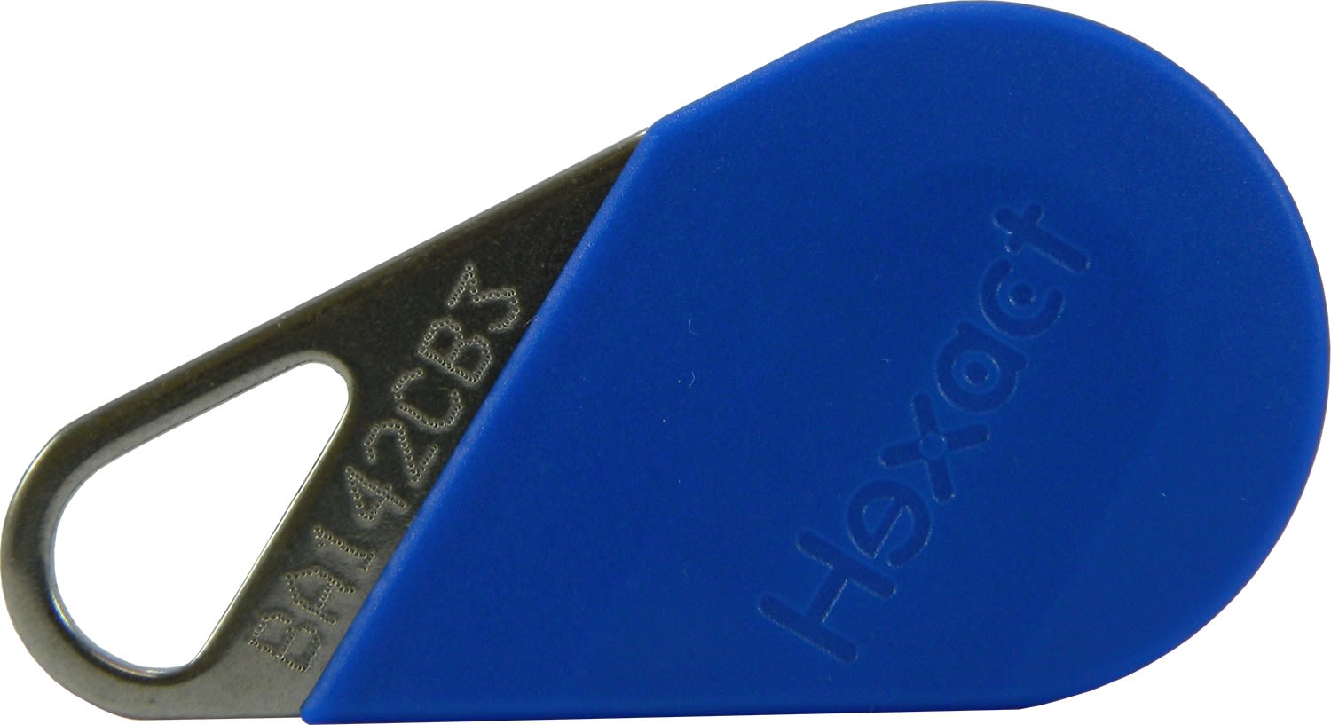 Badge de proximité • Toutes centrales HEXACT • MIFARE 13.56 MHz • Ame INOX et habillage ABS • Numéro gravé • Couleur bleue