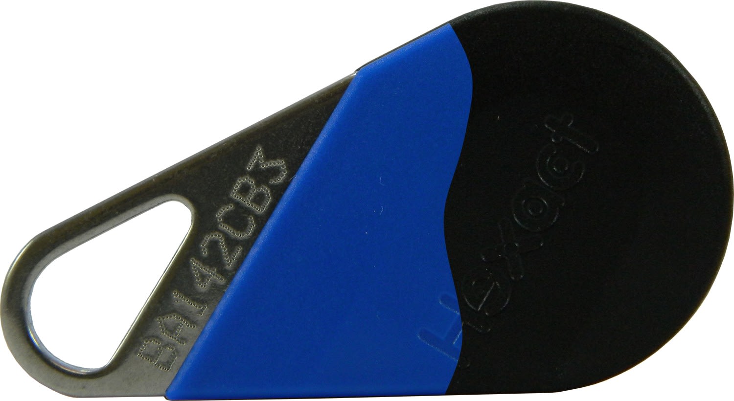 Badge de proximité • Toutes centrales HEXACT • MIFARE 13.56 MHz • Ame INOX et habillage ABS • Numéro gravé • Couleur noire/bleue