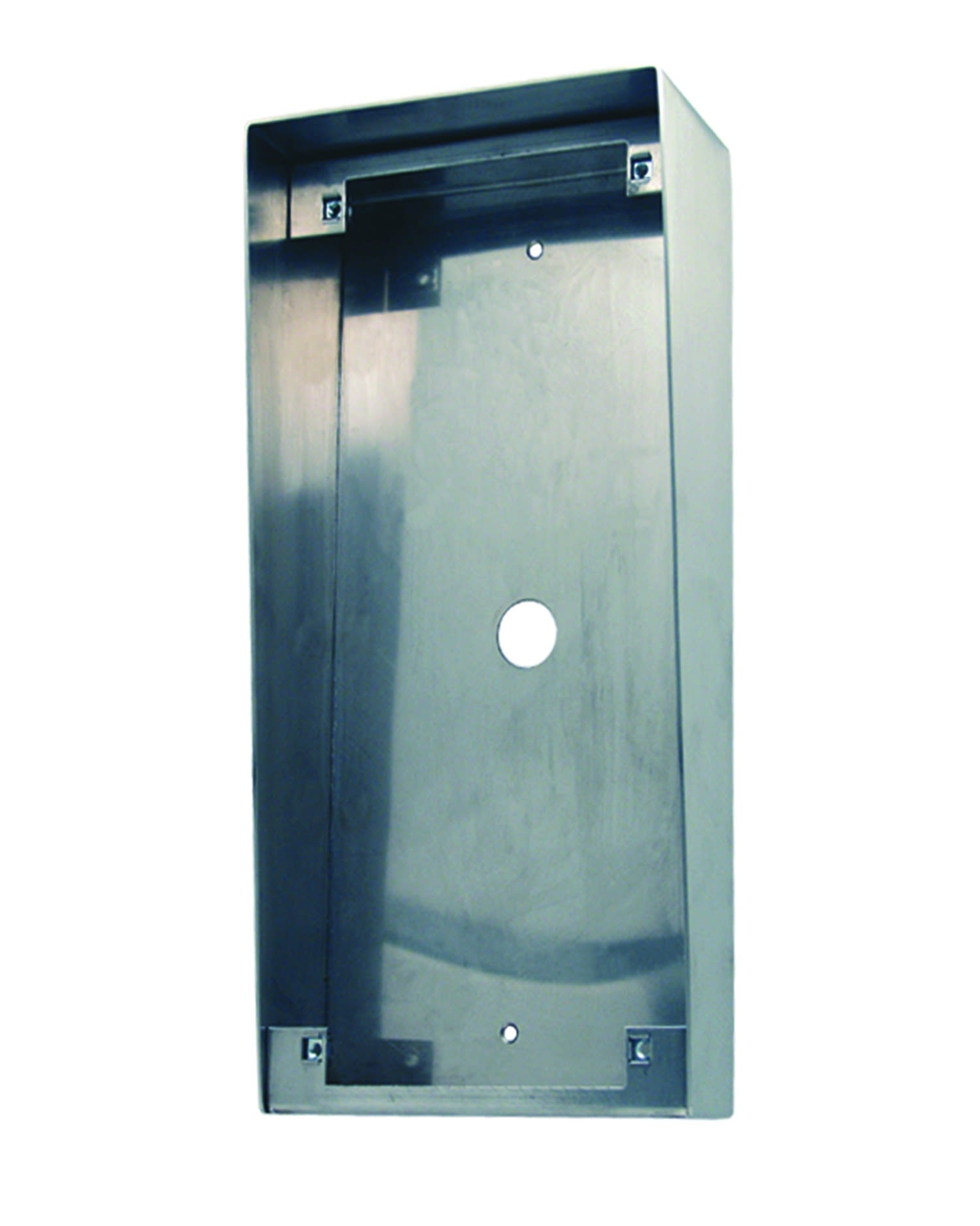 Boîtier saillie avec visière pour platines digitales à défilement • UAV 0153/I11, UAV0154/I11 et UAD 4011-2 • En inox d'épaisseur 1 mm • S'utilise avec le boitier d'encastrement