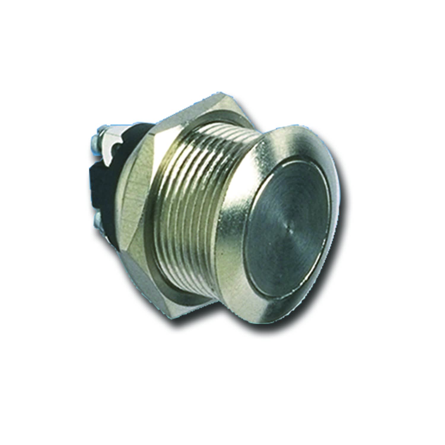 Bouton poussoir inox • Contact NO • Pour platine de rue en inox • Diamètre 19 mm