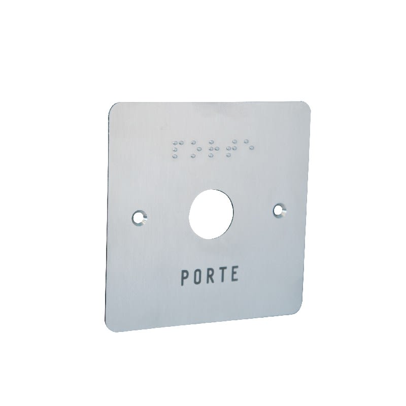 • Gravée PORTE en lettres et en braille