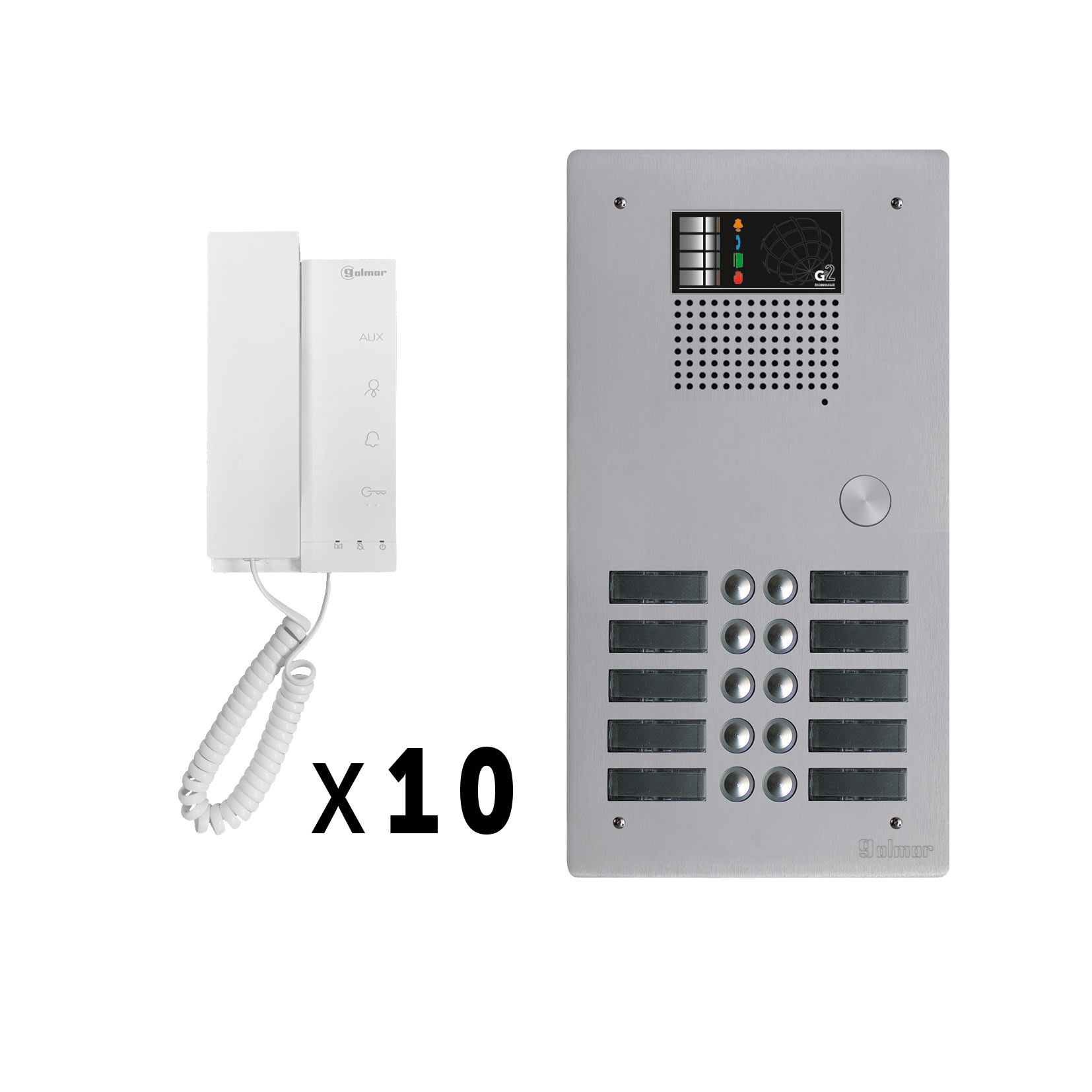 Golmar - Kit audio 10 appels BUS G2P avec platine monobloc alu 2 rangees 10 boutons - GKAG2P/210