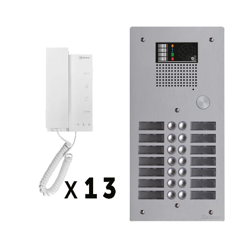 Golmar - Kit audio 13 appels BUS G2P avec platine monobloc alu 2 rangees 14 boutons - GKAG2P/213