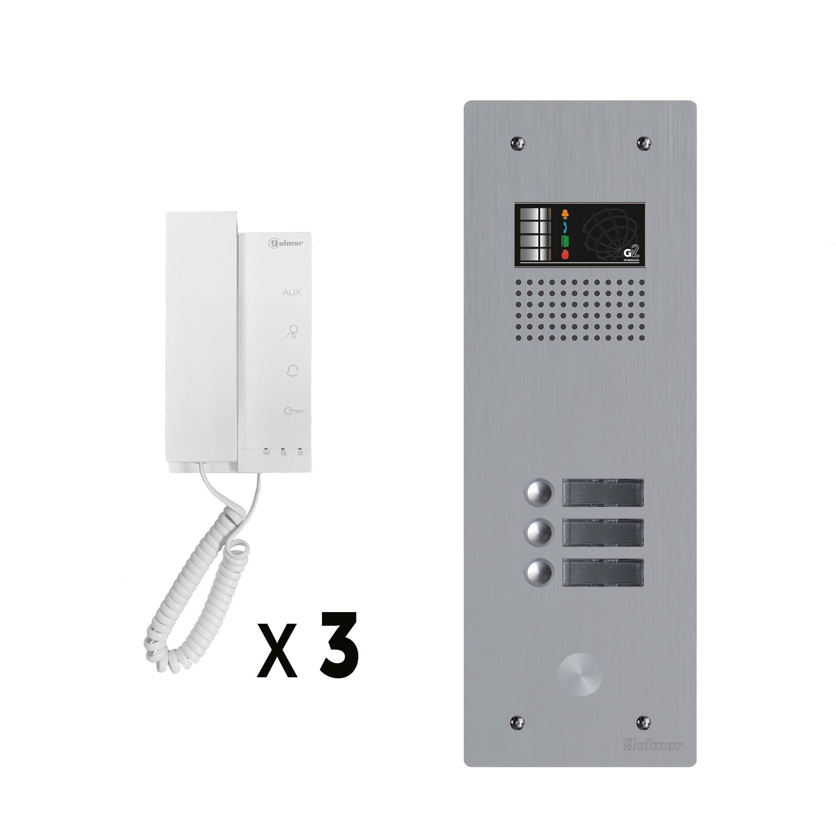 Golmar - Kit audio 3 appels BUS G2P avec platine monobloc alu 1 rangee 3 boutons - GKAG2P/103