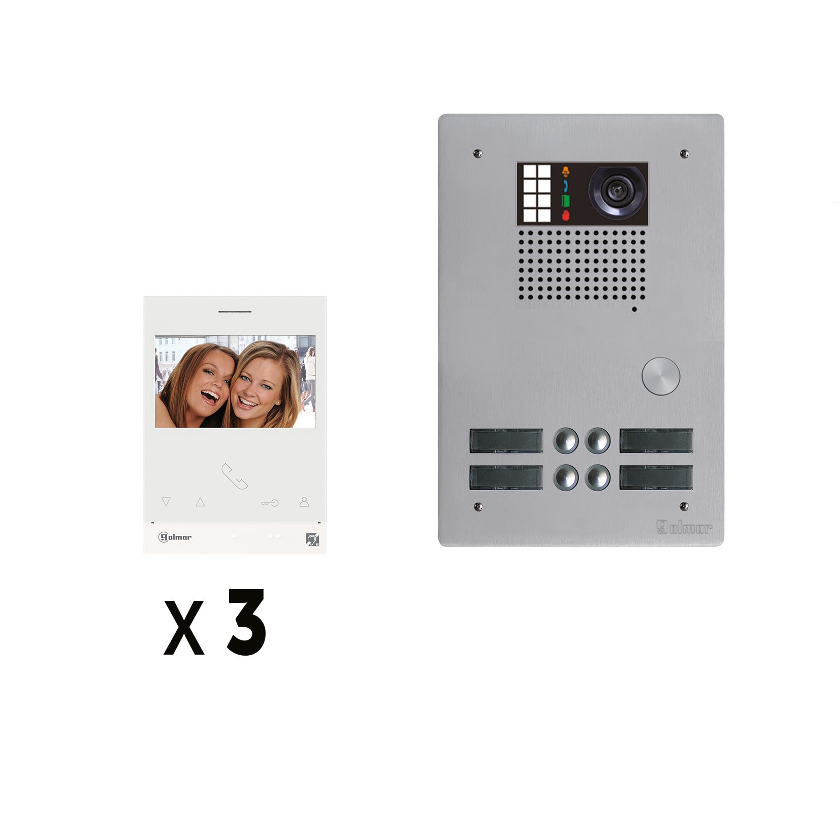 Golmar - Kit video 3 appels BUS G2P avec platine monobloc alu 2 rangees 4 boutons - GKVG2P/203