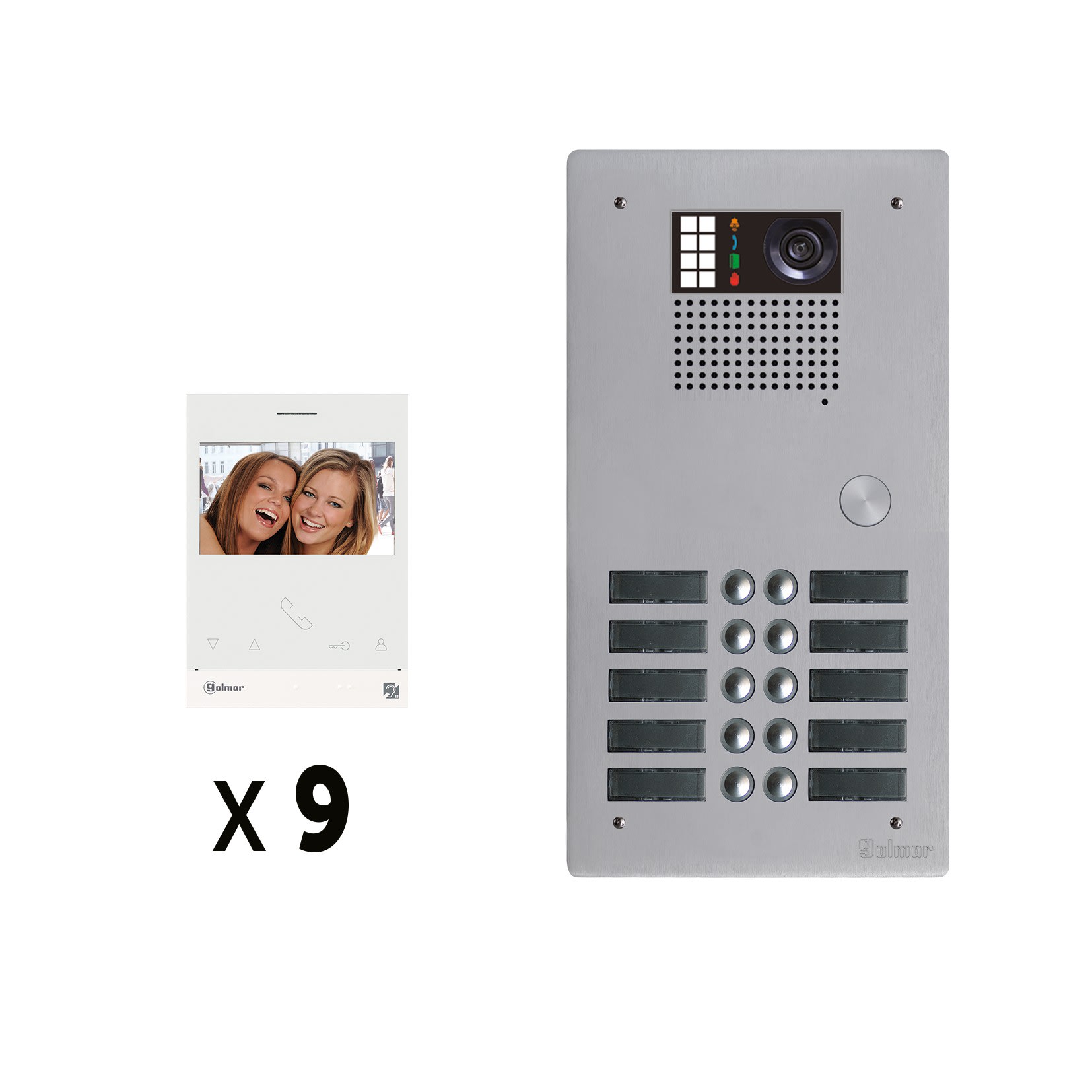 Golmar - Kit video 9 appels BUS G2P avec platine monobloc alu 2 rangees 10 boutons - GKVG2P/209