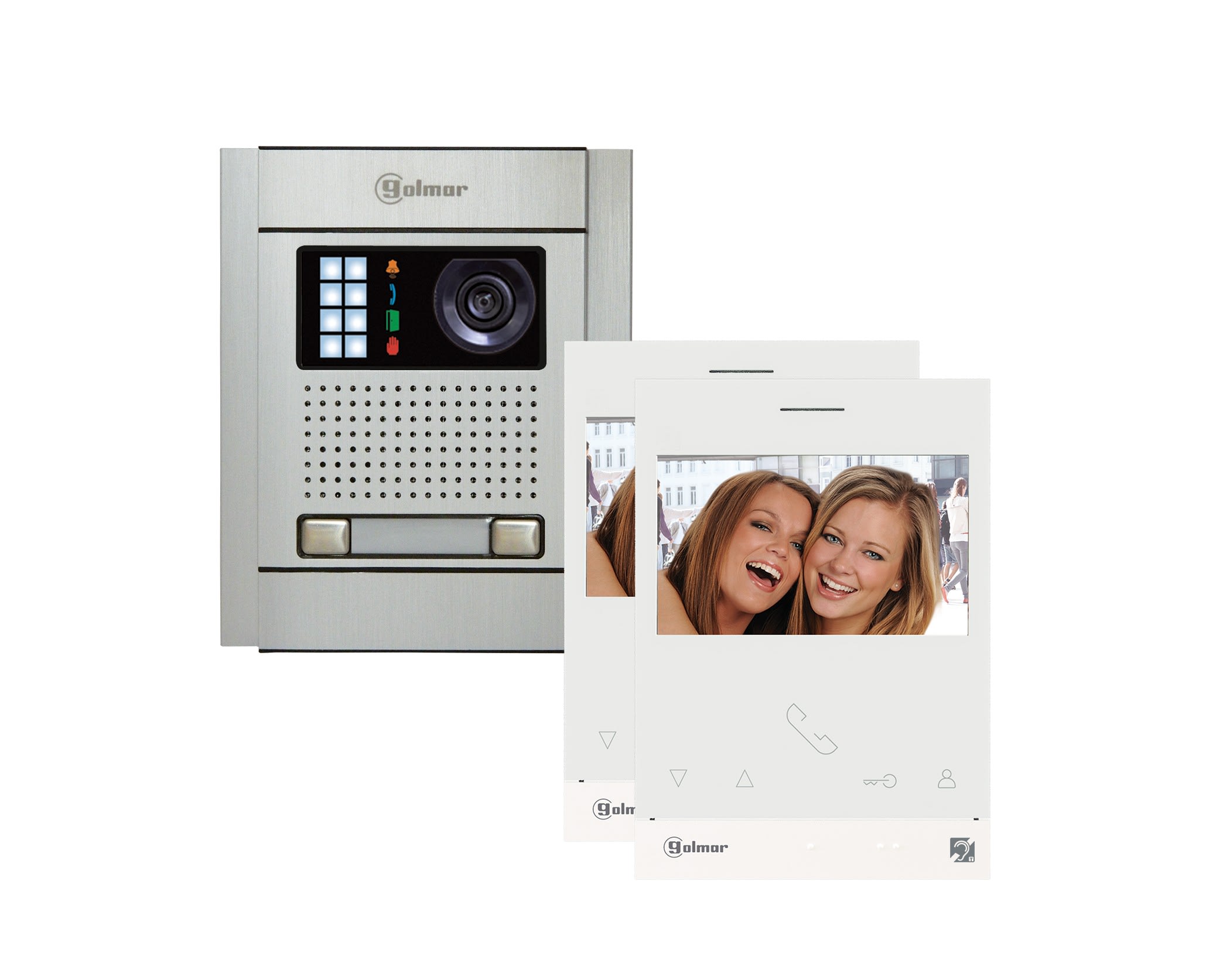 Golmar - Kit video encastre NEXA alu G2P 2 appels avec moniteurs ART4 HLITE (BM) - GN5220/ART4H/L