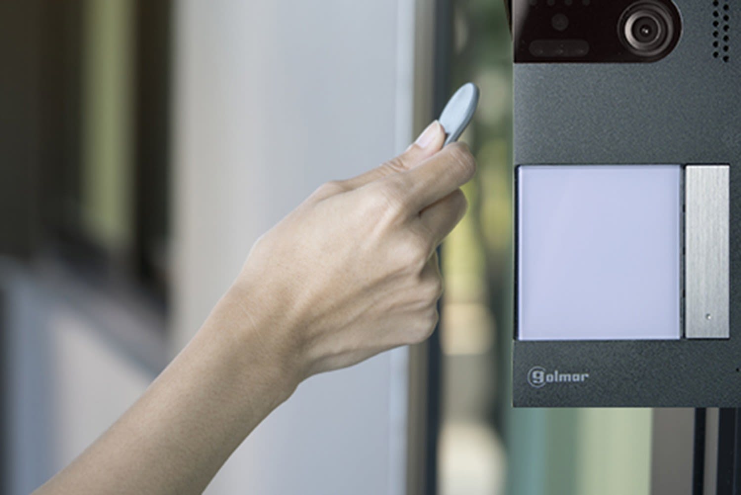 • Contrôle d'accès intégré sur la platine avec programmation directement sur le système (2 badges de programmation, 5 badges de proximité)