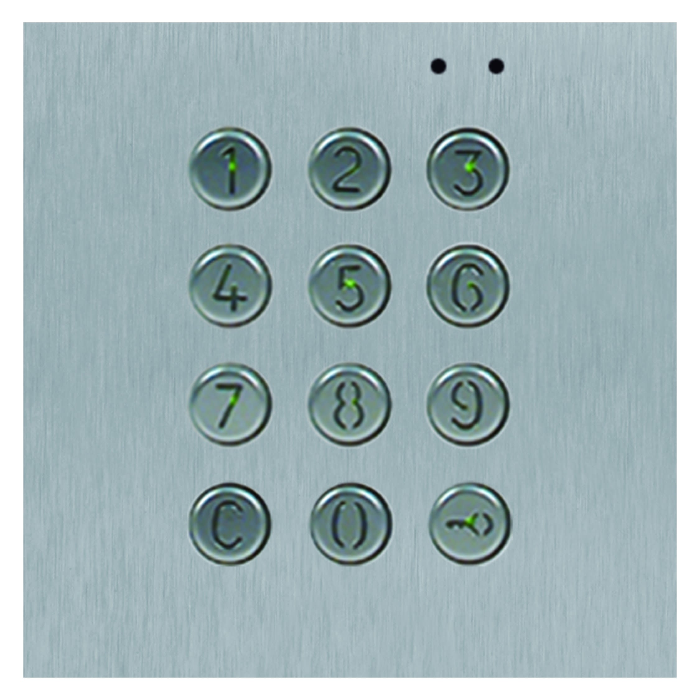 Module clavier codé touches métalliques rétro-éclairées pour platine NEXA inox : • 2 relais NO/NF paramètrables impulsionnel ou bi-stable, • 999 codes • 2 sorties relais libres de tension • En inox 316 L ep. 2 mm • Finition Inox