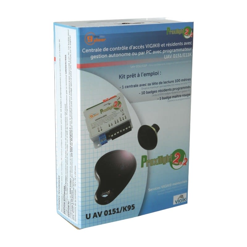 • Centrale avec numéro de canon unique, une tête de lecture format T25 UAV0151/E56 (distance 100 mètres) avec 10 badges résidents programmés et 1 badge maitre