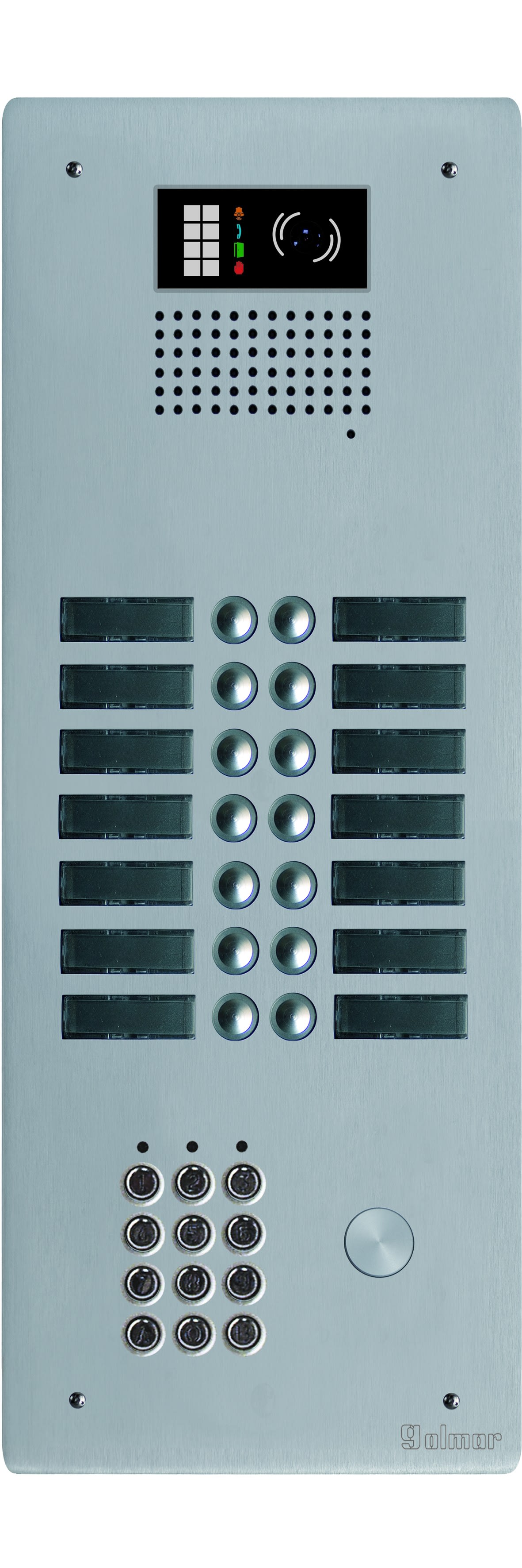Golmar - Platine HR alu + clavier audio ou video BUS G2P 2 rangees 14 boutons - GTV62CL/214