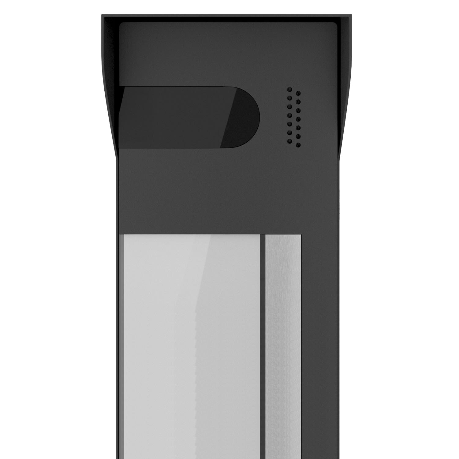 Platine SOUL audio avec visière • 1 bouton en aluminium brossé • Pilotage 2 contact d'ouverture (gâche et portail)