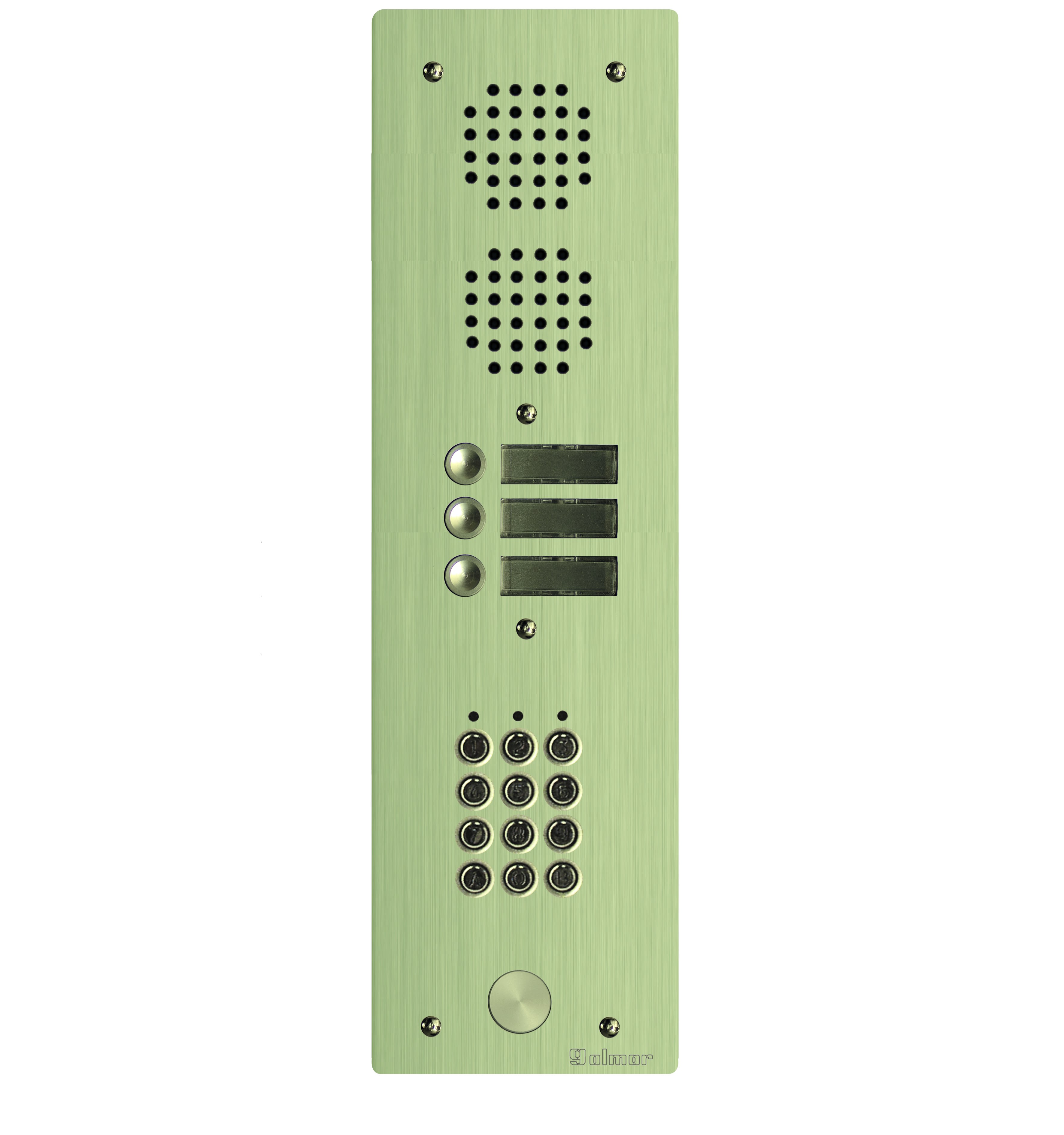 Golmar - Platine monobloc HR alu audio analogique, clavier 1 rangee 3 boutons champagne - UHRCL1003/CH