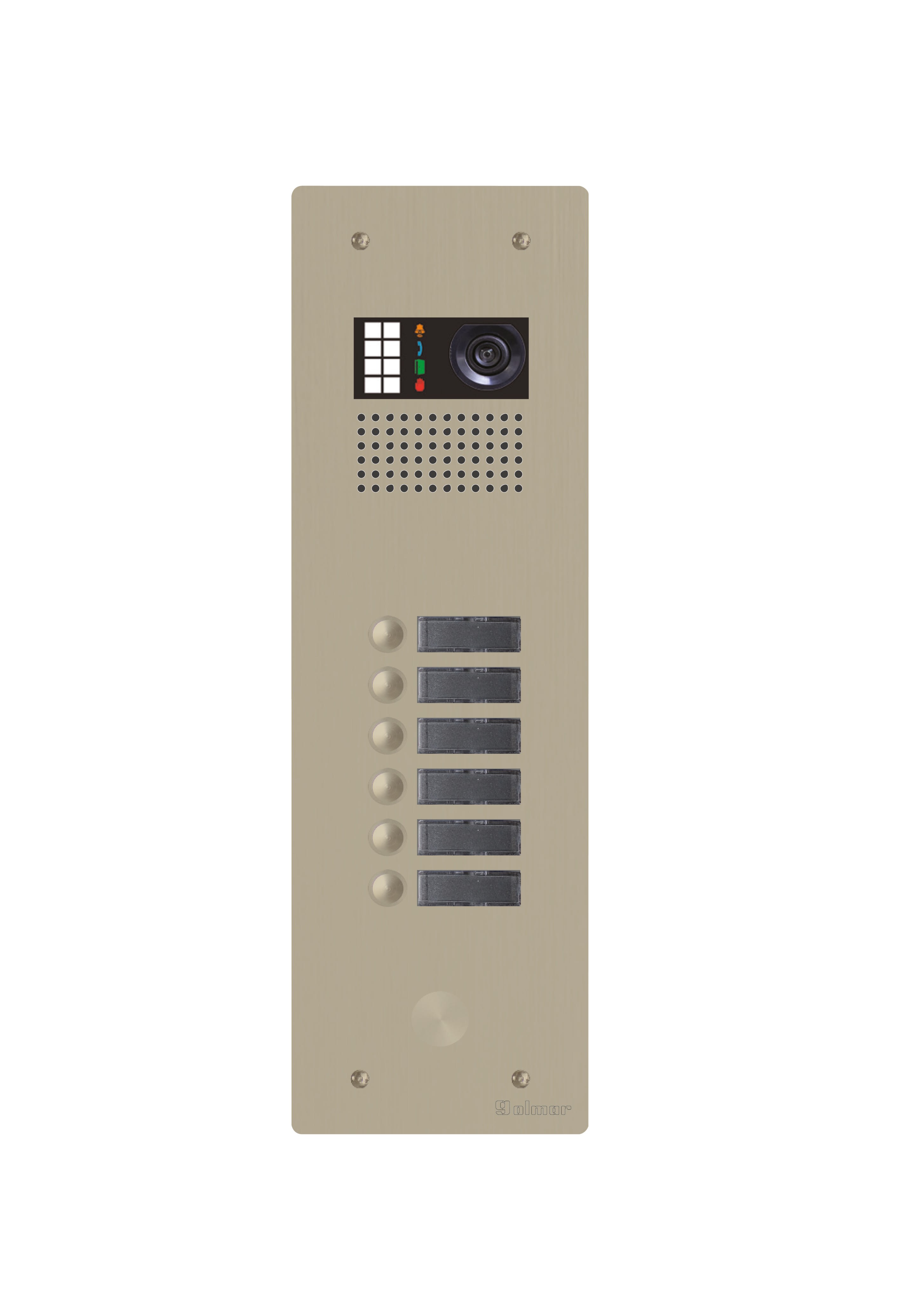 Golmar - Platine monobloc HR alu audio ou video BUS G2P 1 rangee 6 boutons Champagne - GTV62/106CH