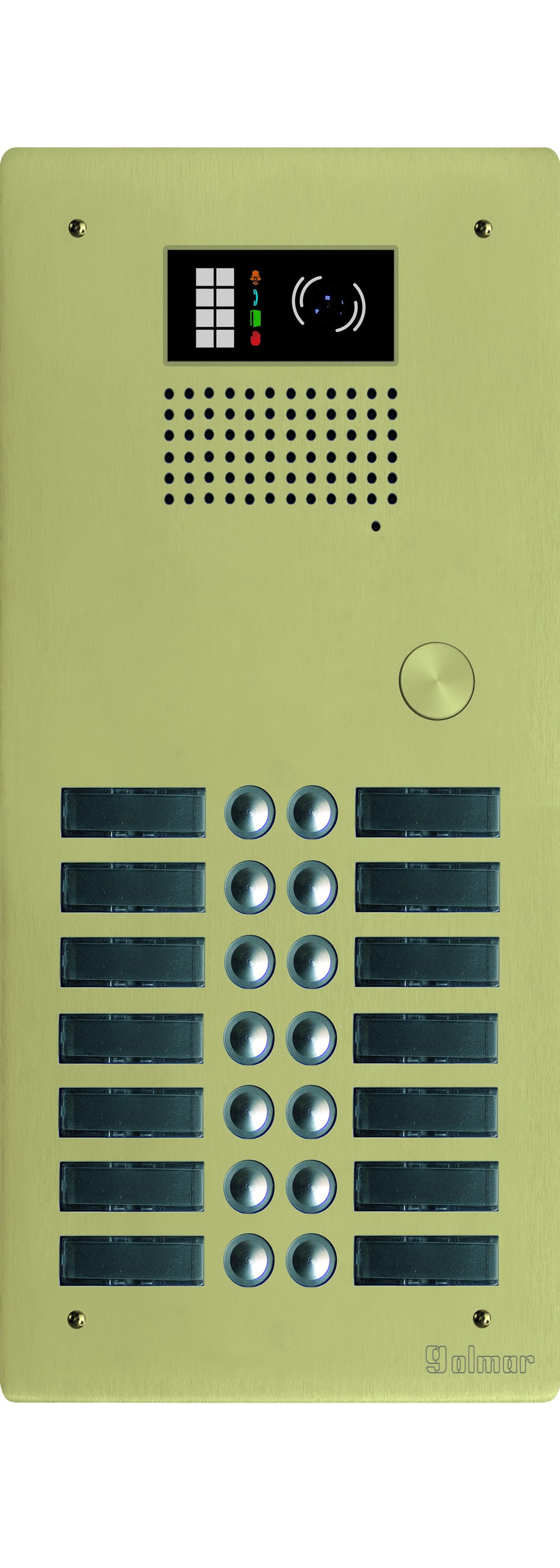 Golmar - Platine monobloc HR alu audio ou video BUS G2P 2 rangees 14 boutons Champagne - GTV62/214CH
