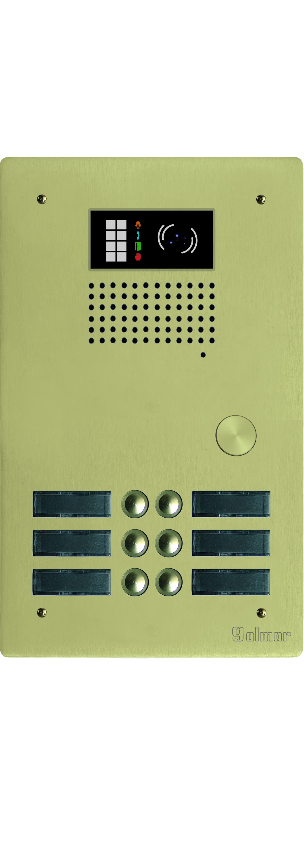 Golmar - Platine monobloc HR alu audio ou video BUS G2P 2 rangees 6 boutons Champagne - GTV62/206CH