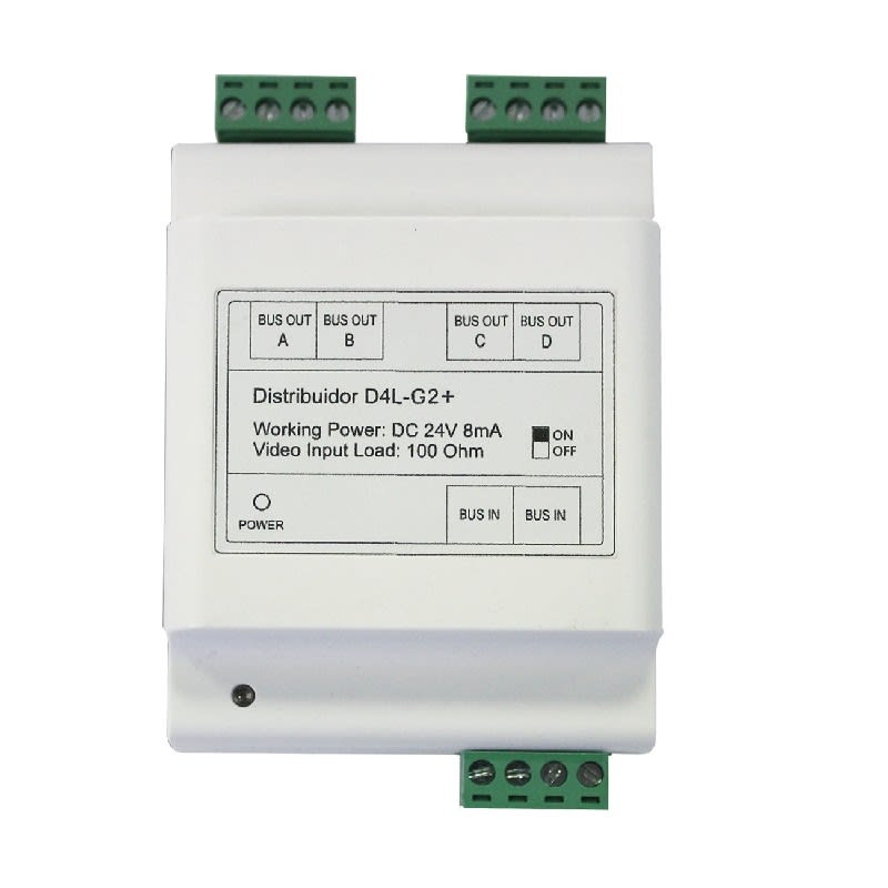 Répartiteur de colonne 4 directions BUS G2P • Permet de raccorder 4 postes intérieurs (audio ou vidéo) • LED d’état • Cavalier de configuration fin de ligne • Bornier débrochable • Boîtier Rail DIN 4 modules