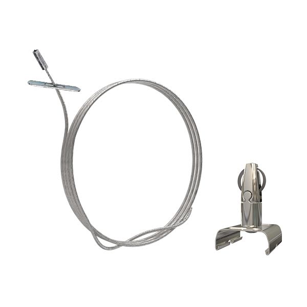 Système de suspension Angel prêt à l'emploi rapide et design. Composé d'un dispositif autobloquant à déverrouillage intégré Angel sortie latérale clip Eutrac, longueur de câble 2m embout butée (SP). Charge de travail 15kg, certifié