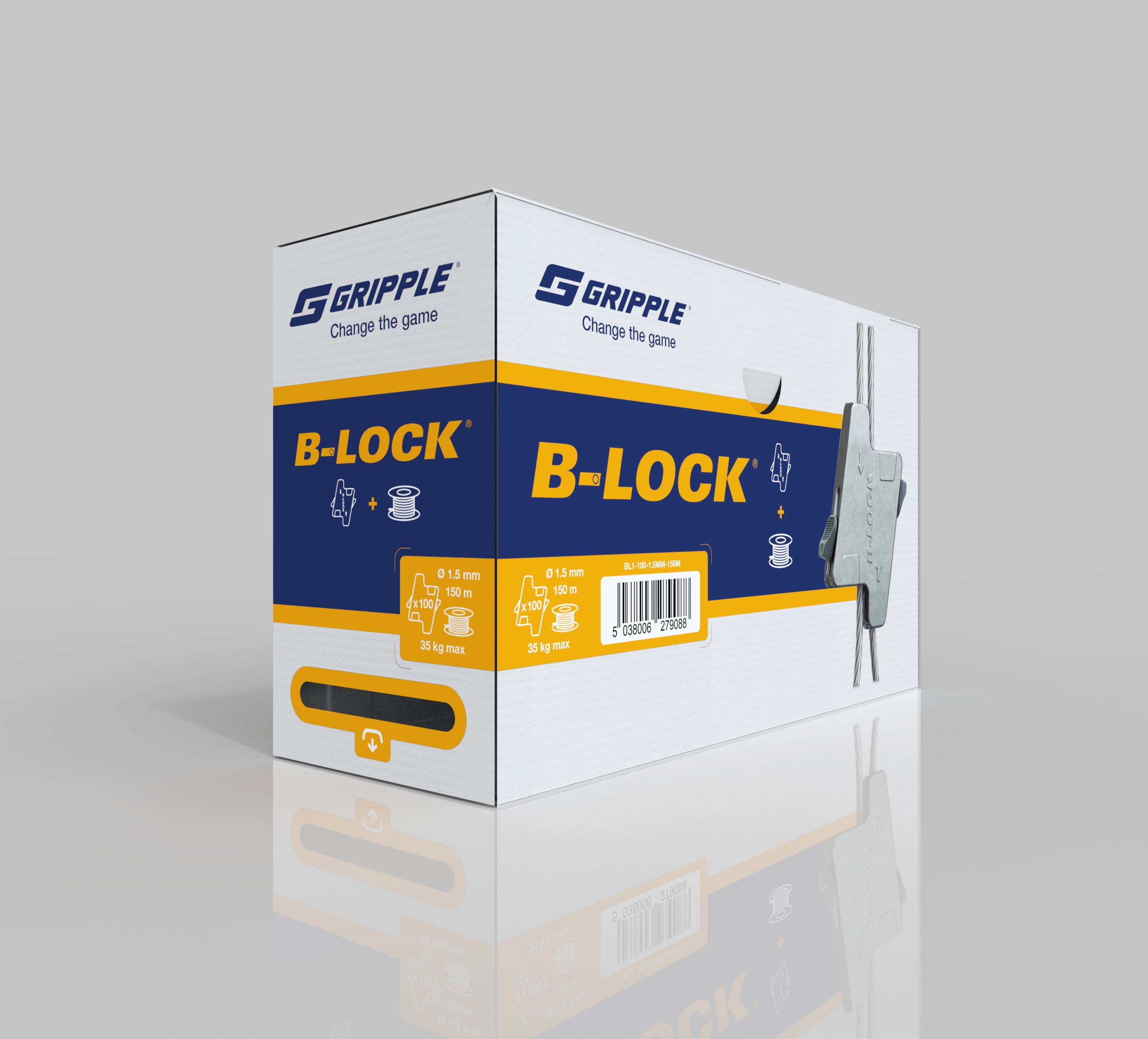 Gripple - Boite contenant 100 galets B-Lock avec 1 bobine de 150 m de câble Ø 1,5 mm - BL1-100-1.5MM-150M